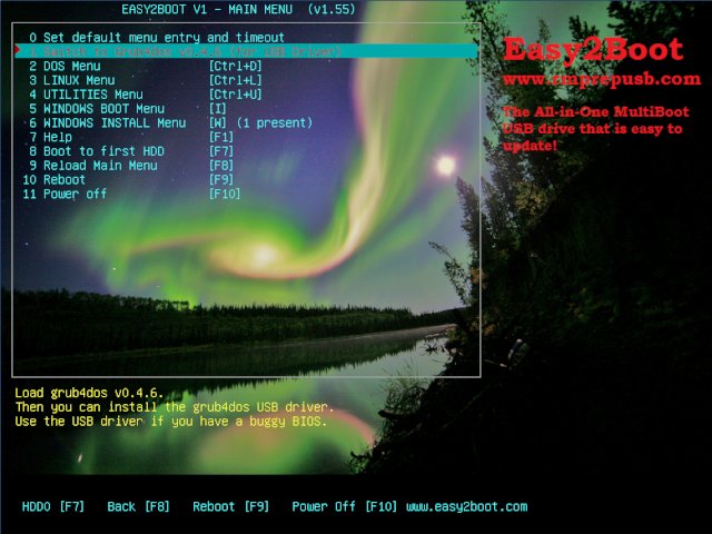 Описание: Easy2Boot - инструмент для создания мультизагрузочных флешек, которые могут содержать в себе любой дистрибутив, LiveCD или образ дискеты. Easy2Boot работает в тесной связке с приложением для создания загрузочных накопителей RMPrepUSB, которое уже должно быть установлено на Вашем компьютере.