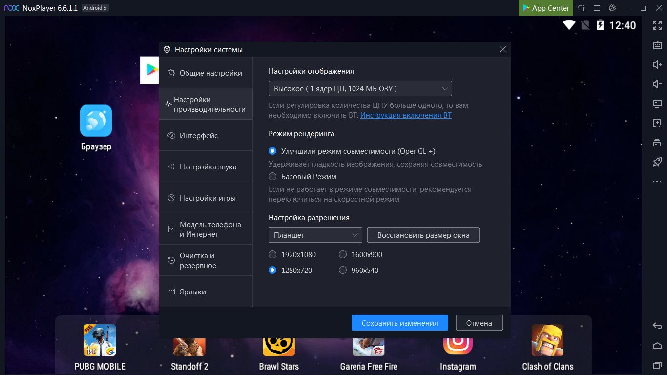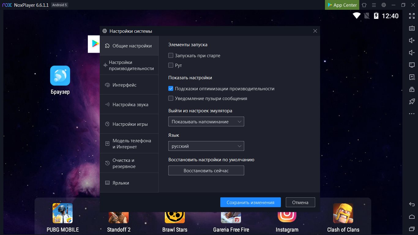 Среди прочих особенностей NoxPlayer стоит отметить поддержку всех современных процессоров AMD, корректную работу на Windows 10, удобное изменение настроек эмулятора и поддержку тем оформления.