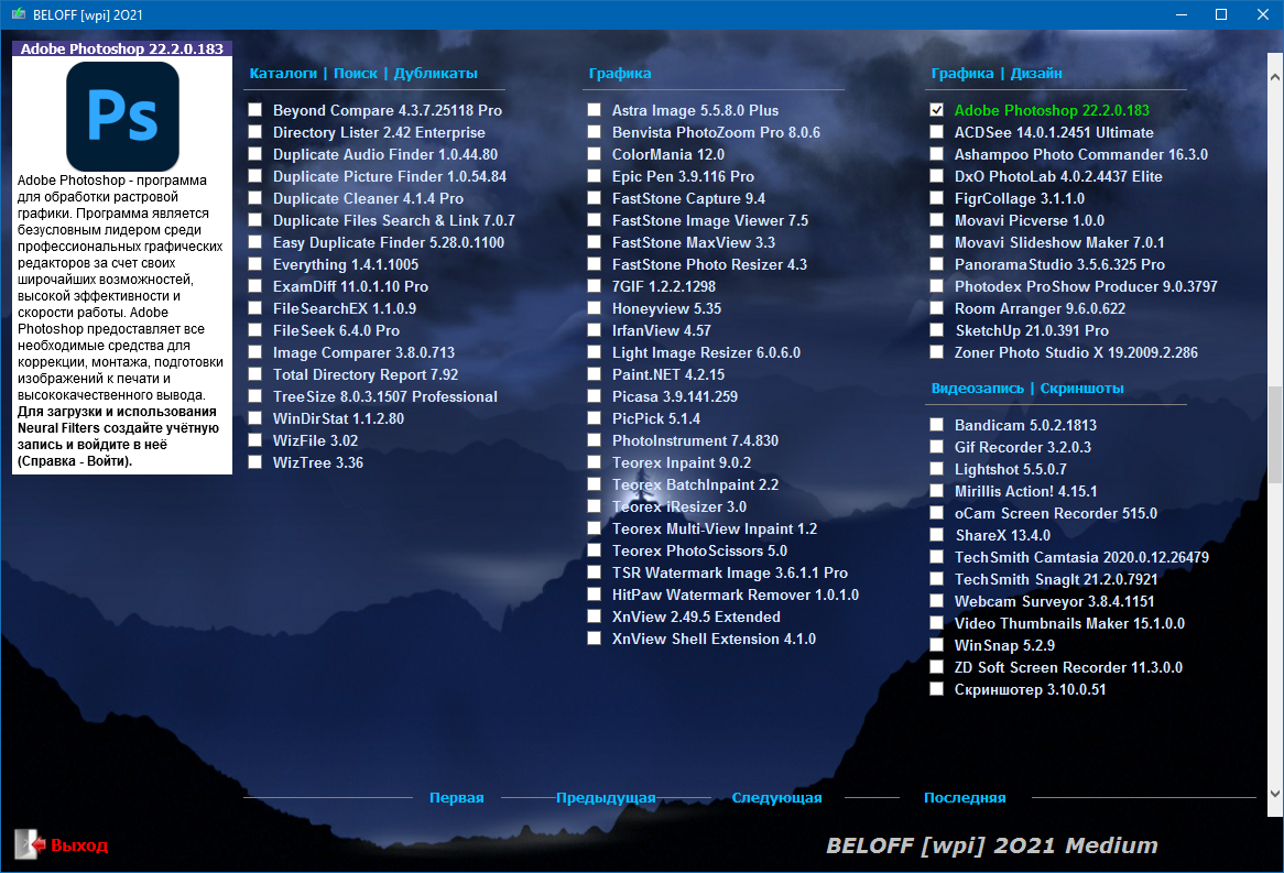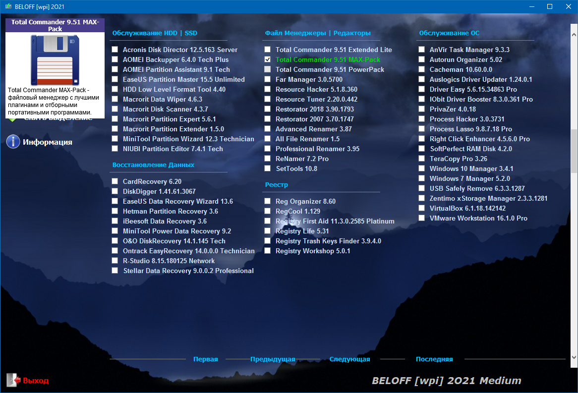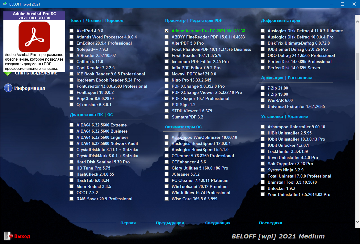 Универсальный Сборник Лучших Программ Рунета, распределённых по категориям, с Автоматической Установкой в Операционные Системы Windows. В Сборник дополнительно добавлены Портативные Программы, которые можно будет легко использовать как с Диска и Виртуального Привода, так и с USB-накопителей, включая установку MInstAll и WPI, а также автоматическую установку драйверов с помощью Snappy Driver Installer и DriverPack Solution. Для большего удобства использования Сборника добавлена Мультизагрузка.
