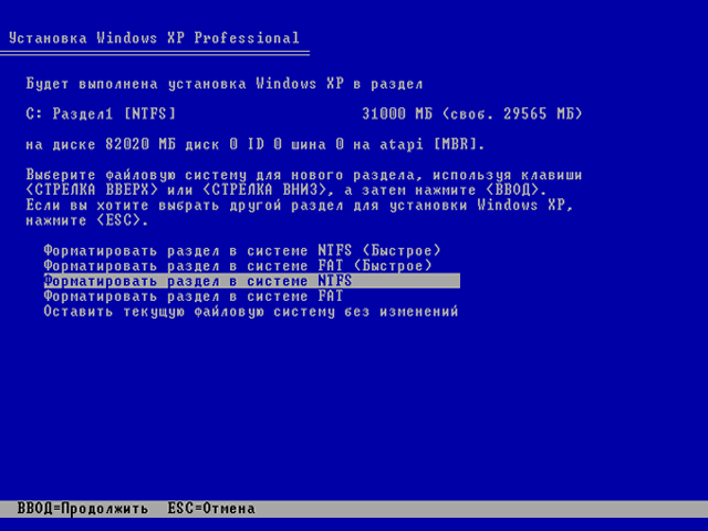 файловой системы, в которую этот раздел будет отформатирован, дальнейшая установка проходит автоматически.