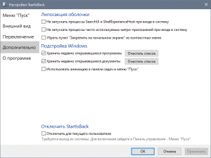Позволяет настроить отображение и поведение меню «Пуск» и интерфейса Windows 10: скины, изображение кнопки, активные углы экрана и многое другое.