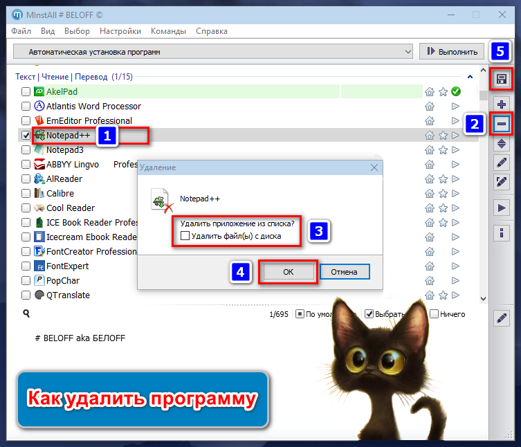 • Сначала удаляете ненужные Вам дистрибутивы (Proga.exe) из папки BELOFFwpiInstall...