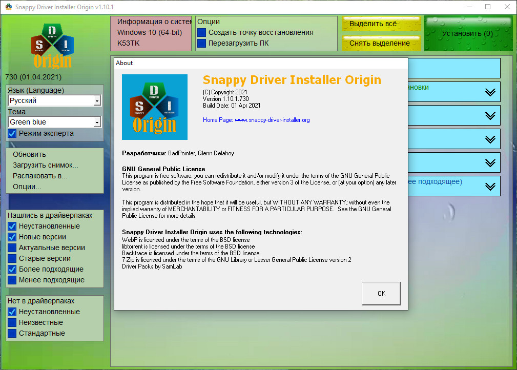 (НЕофициальная раздача) Версия программы: SDIO R730 от 01.04.2021 / DP 21041 от 15.04.2021