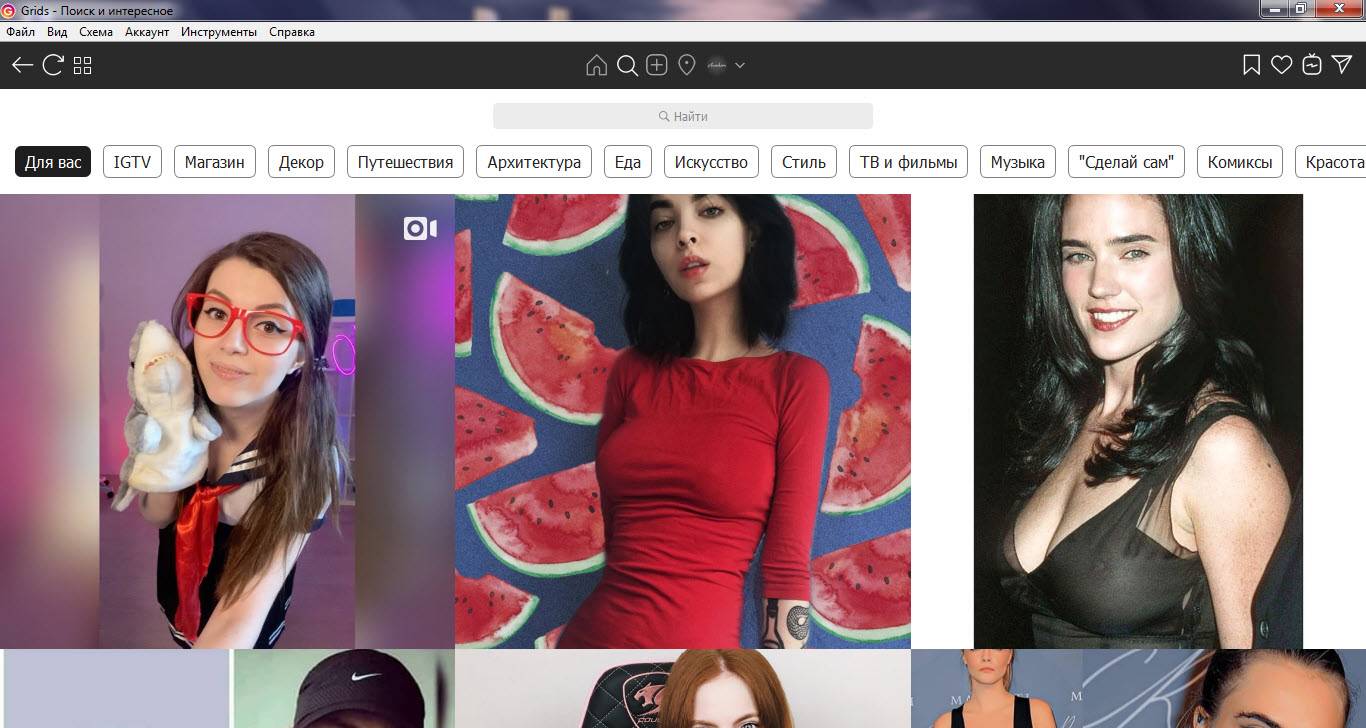 Grids for Instagram - один из наиболее подходящих ПК-клиентов для социальных сетей. Программа имеет не худшие функции, чем последние версии мобильного приложения. Вам даже не нужно понимать инструмент. Потому что его механизм работы похож на правила мобильной версии программы. Вы можете просматривать ленту друзей, посещать категорию «Популярные», просматривать фотографии в избранном, редактировать или просто просматривать их профили, узнавать, кто оставил комментарии или лайки к вашим фотографиям.
