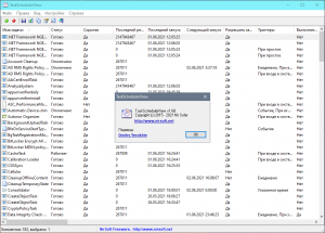 TaskSchedulerView - простенькая портативная (не требующая установки в систему) информативная утилита, которая показывает все задачи планировщика операционной системы Windows. Кроме того, здесь же у Вас есть возможность включать и выключать запланированные задачи, а также организовать работу сразу с несколькими задачами одновременно.