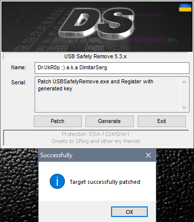 - Нажать "Patch", пропатчить файл USBSafelyRemove.exe
