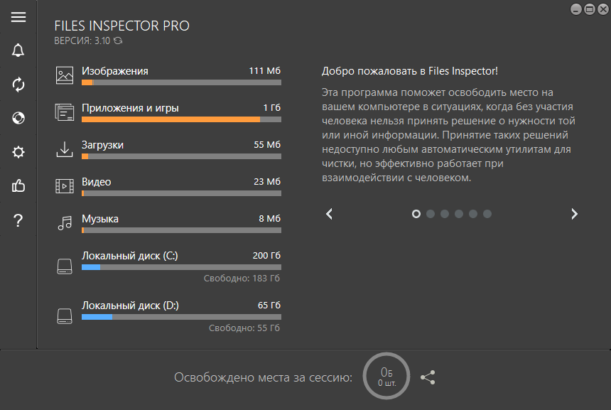 Функция экспресс-проверки анализирует папки документов, изображений, видео, музыки и других и наглядно отображает занятое ими пространство на ваших носителях.