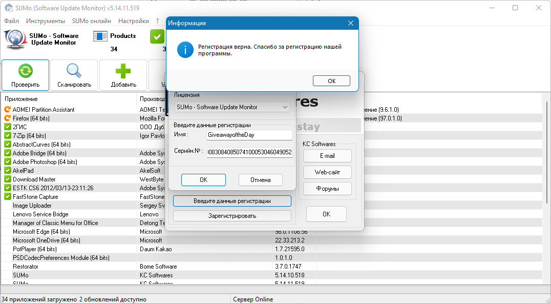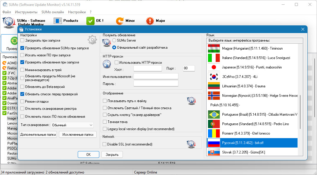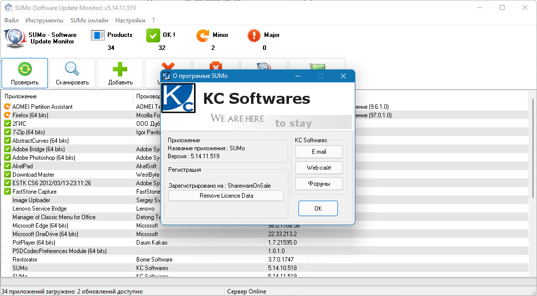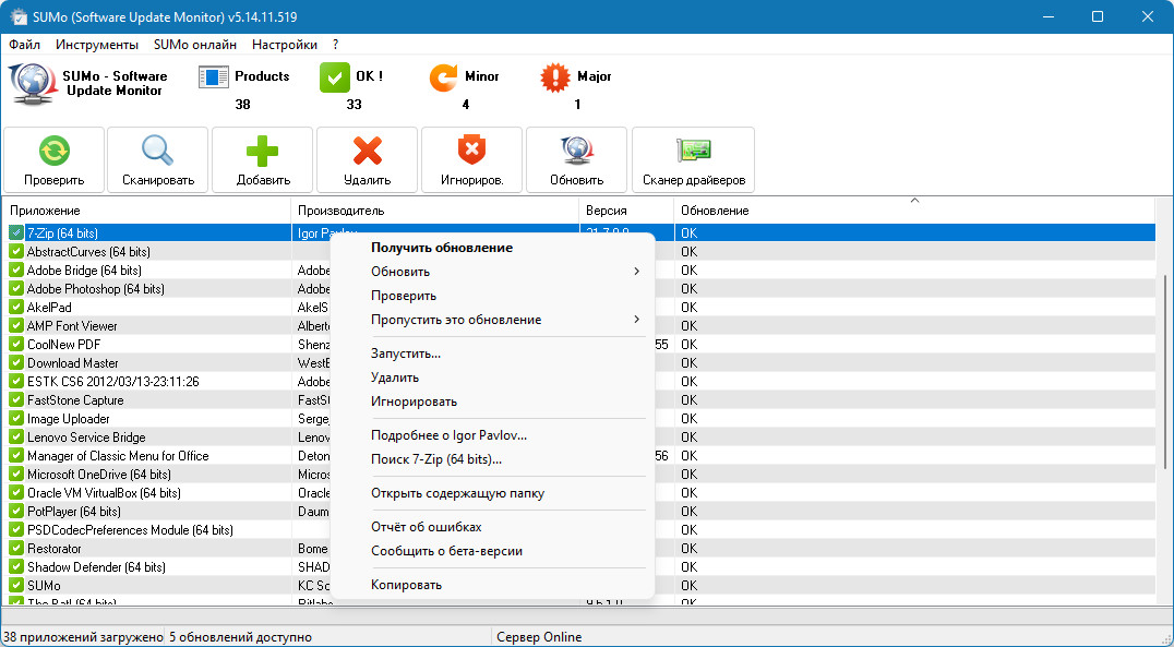 SUMo (Software Update Monitor-монитор обновлений программного обеспечения) обеспечивает актуальность и безопасность вашего ПК благодаря использованию самой последней версии вашего любимого программного обеспечения! В отличие от встроенных функций автоматического обновления, SUMo сообщает вам, доступны ли обновления, прежде чем использовать программное обеспечение.