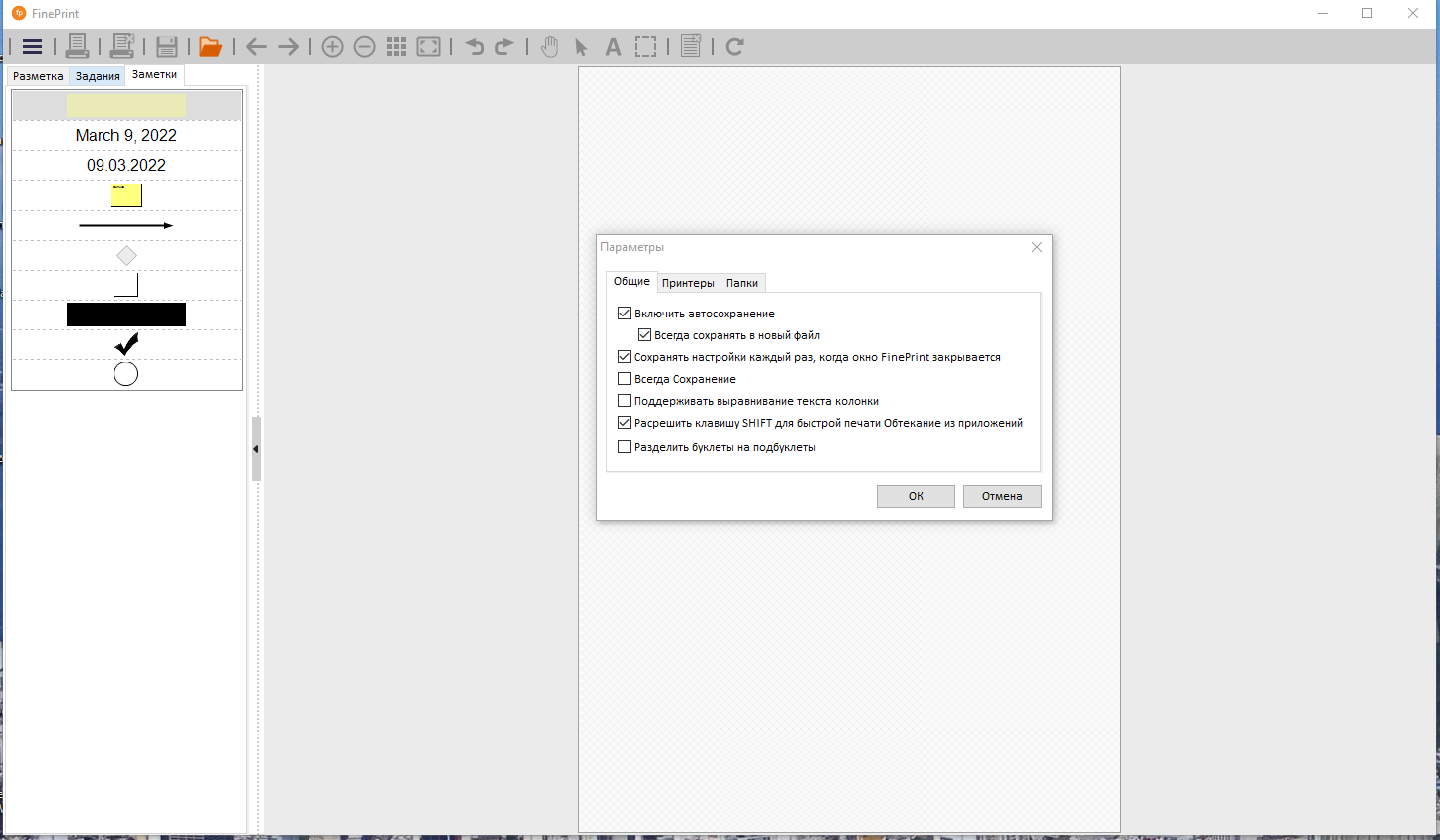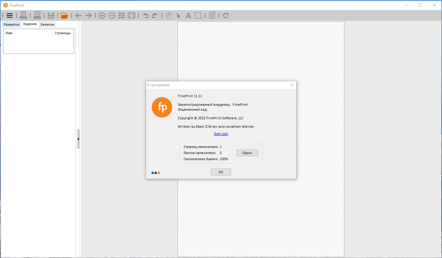 - Отображение количества сэкономленной при помощи FinePrint бумаги