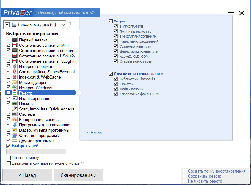 • Более чем 100 scans / cleanups