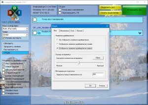 - Нажатием клавиши F8 можно менять режим отображения драйверов в списке. Одно нажатие выводит в правую часть панели драйвера название драйверпака с этим драйвером. Второе нажатие перемещает название драйверпака вверх над драйвером/группой драйверов. Третье нажатие убирает название драйверпака. (те же действия доступны в диалоговом окне "Опции")