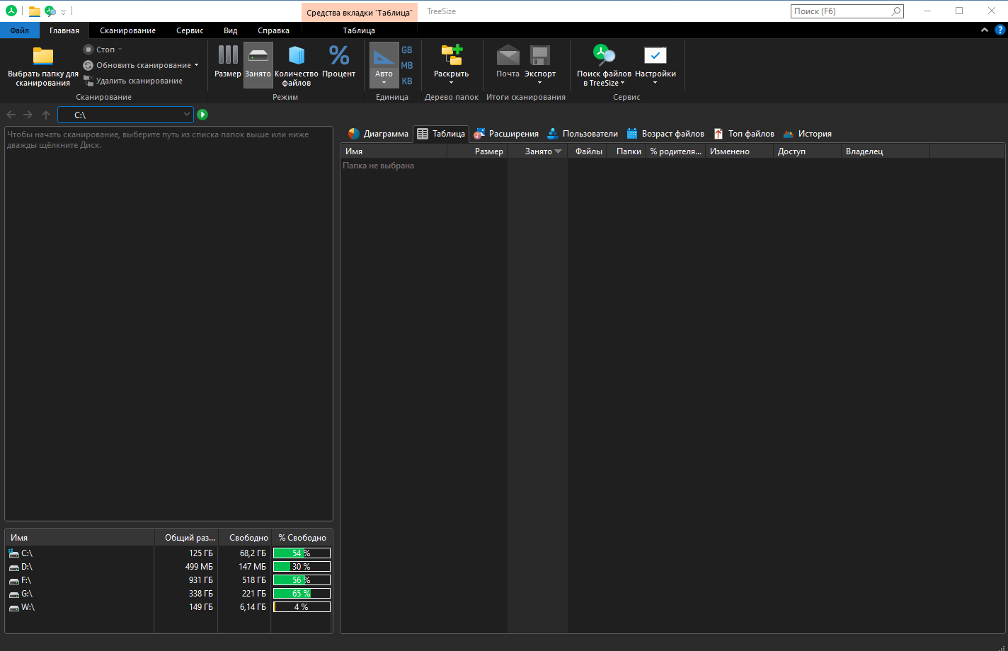 Визуализируйте использование диска в круговой или гистограмме.
