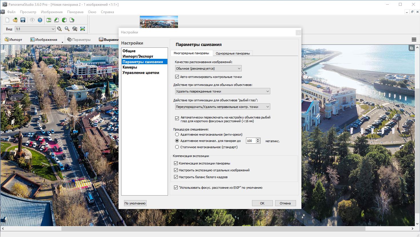 • Ручные настройки пост-обработки всех шагов создания панорамы