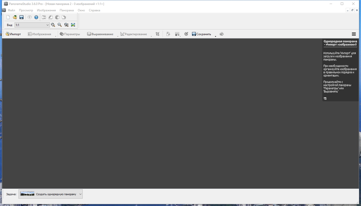 • Импорт существующих панорамных изображений для дальнейшей обработки