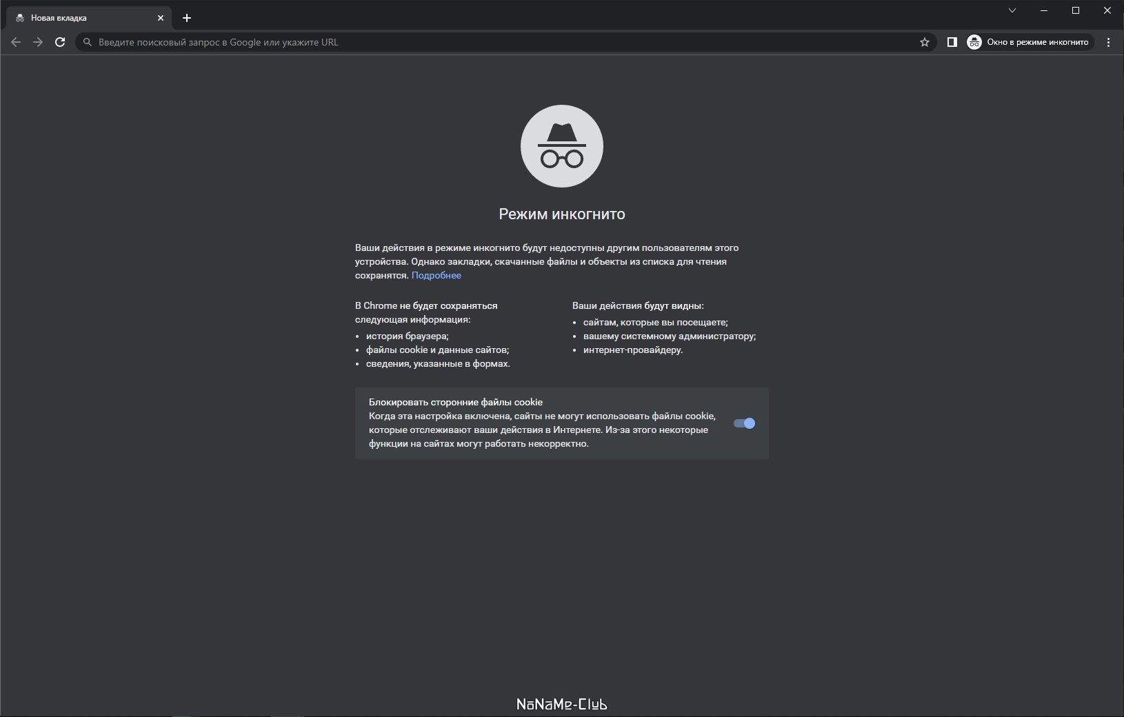 - Режим инкогнито - просмотр веб-страниц без сохранения информации
