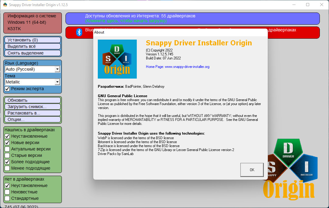(НЕофициальная раздача) Версия программы: SDIO R745 от 07.06.2022 / DP 22062 от 07.06.2022