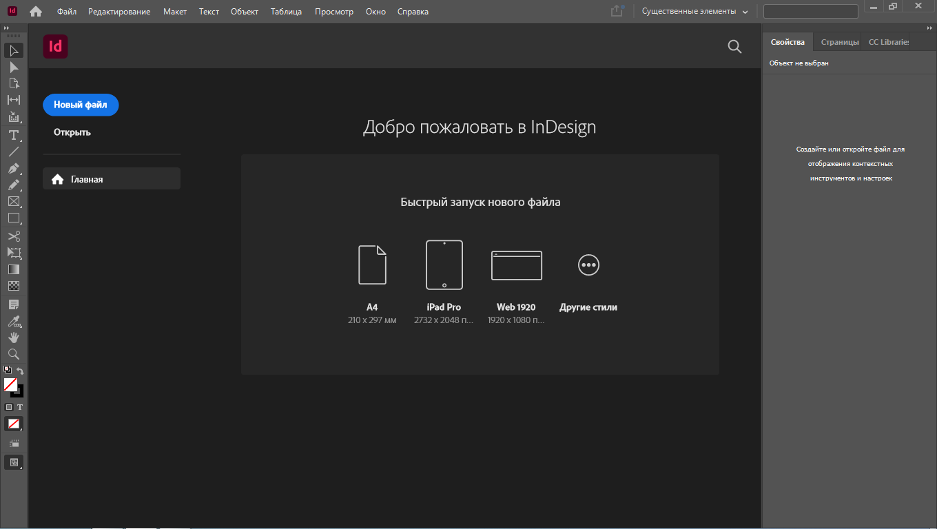 2. Настройки - Основные - Показывать окно "Новый документ" в старом оформлении