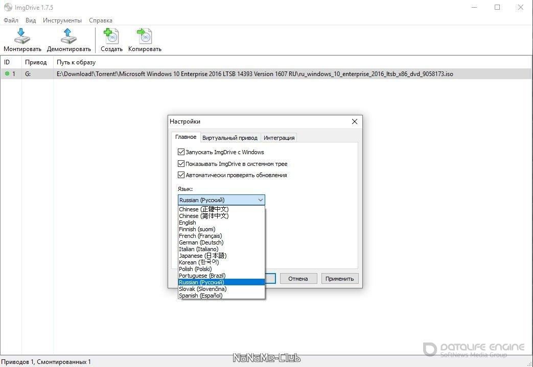 ImgDrive позволяет одним щелчком мыши монтировать ISO, CUE (файлы Cue листов APE/FLAC/WAV/BIN), NRG (файлы образов Nero), MDS/MDF (файлы образов дескрипторов носителей), CCD (файлы образов CloneCD), ISZ образы (сжатые файлы образов ISO), монтировать .APE/.FLAC/.WAV файлы как AUDIO CD, поддерживать до 7 виртуальных приводов одновременно, поддерживать мультисессионные образы дисков.