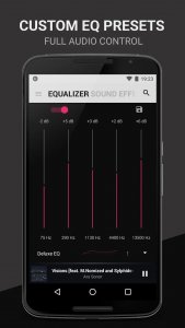 Первое, что бросается в глаза при запуске этого проигрывателя его минималистическое оформление в черно-серых тонах. Кому-то оно может не понравится, а кто-то (например, владельцы смартфонов с AMOLED'ами) будут только в восторге. Так или иначе, судить о плеере только по его внешнему виду нельзя, а с функциональностью у нашего героя все отлично. Он поддерживает все популярные аудио форматы (MP3, FLAC, OGG, WAV), имеет встроенный пяти-полосный эквалайзер, подбирает информацию об исполнителях из Last.FM и сохраняет позицию трека при закрытии плеера, также имеется несколько шрифтов и тем оформления.