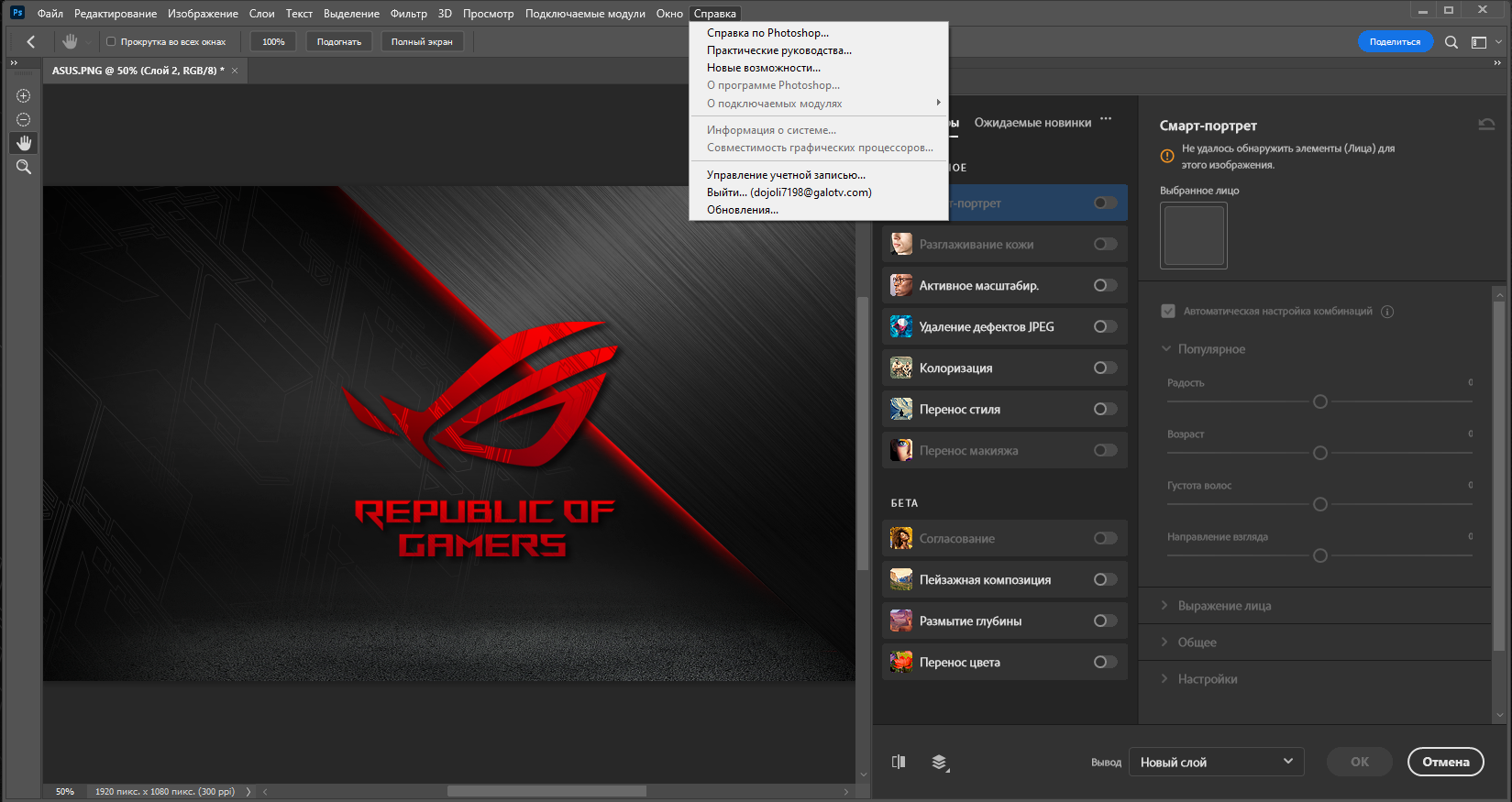 3. Нейро-фильтры работают при условии, если вы выполнили вход в Photoshop *