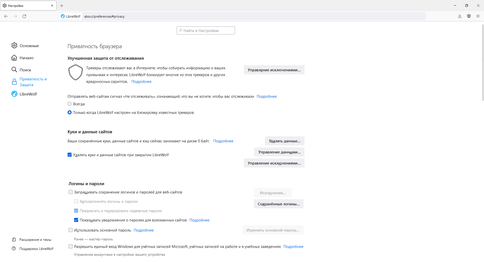 LibreWolf как раз решает данную проблему. Браузер лишен отвлекающих функций Firefox и сконцентрирован на максимальной приватности «прямо из коробки».