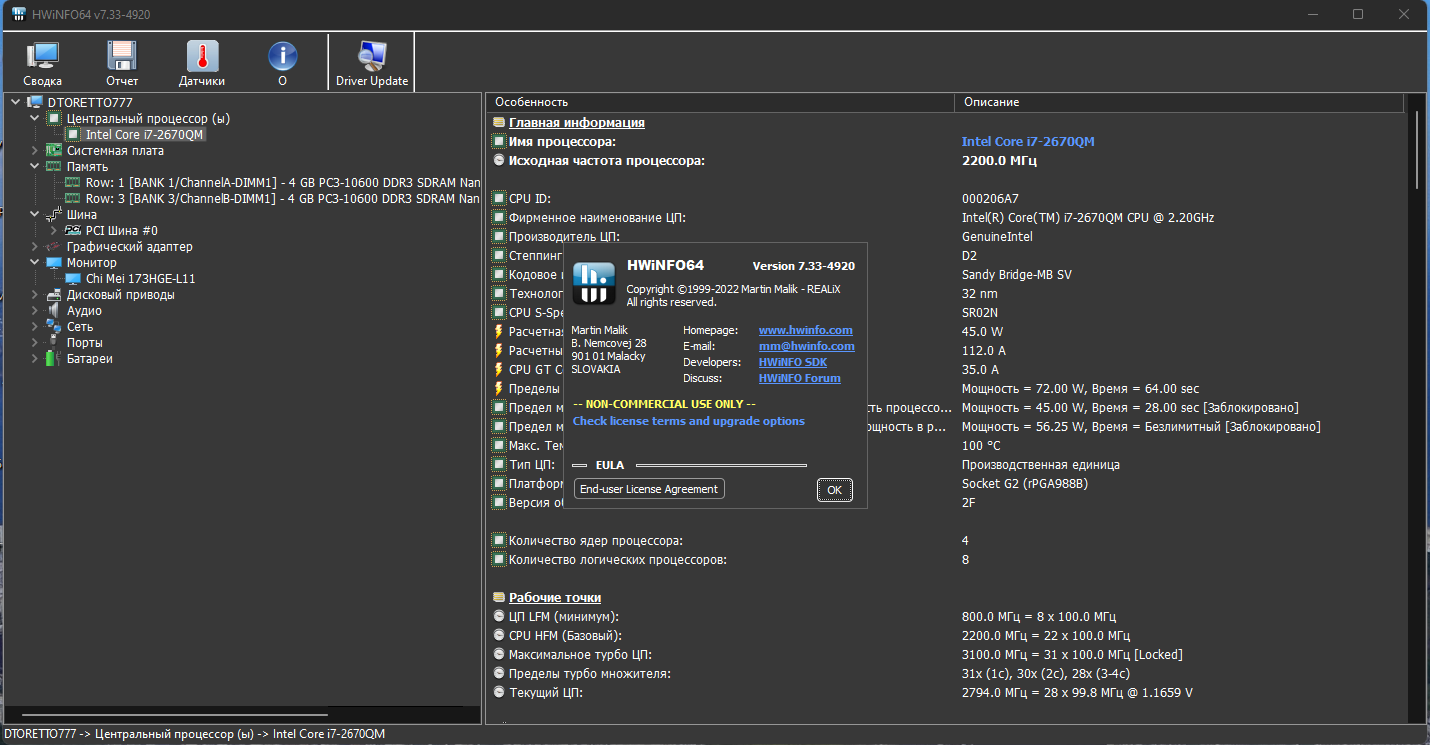 HWiNFO32/64 - мощный информационный инструмент, который собирает важные данные о состоянии аппаратных частей компьютера, включая процессоры, видеокарты, RAM, жёсткие диски, сетевые карты, адаптеры, показания датчиков и т.д. Инструмент поставляется как в установочном варианте, так и портативном.