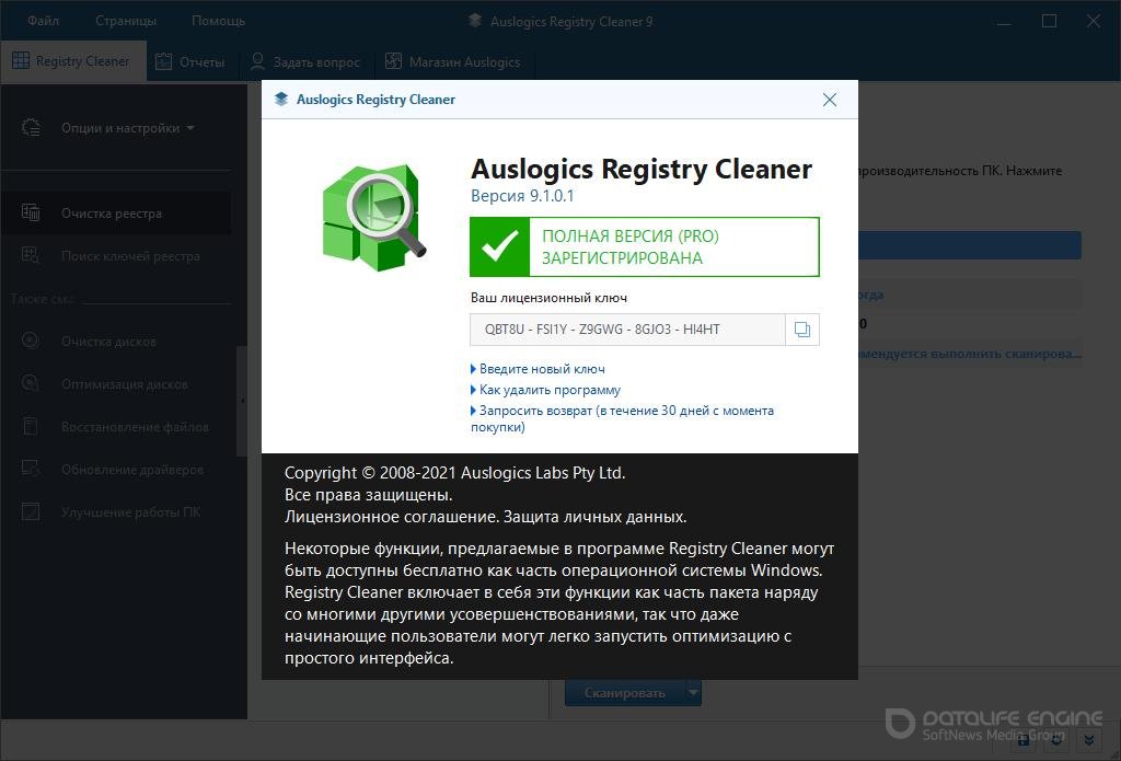 Auslogics Registry Cleaner поможет вам избавиться от ошибок в реестре, удалить неиспользуемые ключи и сделает это совершенно бесплатно. Реестр Windows - один из самых важных и в тоже время самый уязвимый компонент системы. Каждый раз, когда вы устанавливаете или удаляете программы, в реестре создаются ключи, которые могут там оставаться и приводить к системным сбоям, зависаниям и нестабильной работе компьютера в целом. Таким образом, крайне важно держать реестр в отличной форме, периодически проверяя его на наличие ошибок и ненужных данных. Auslogics Registry Cleaner создан для быстрой и безопасной оптимизации реестра. Он позволит вам просканировать реестр и найти те ключи, которые не нужны вашему компьютеру или являются ошибками.