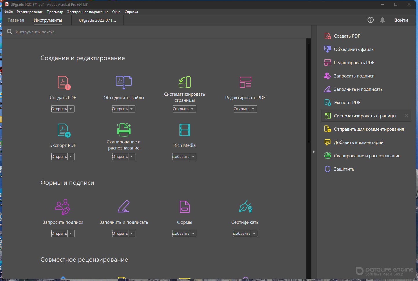 Acrobat Pro — это полностью обновленная настольная версия лучшего в мире решения для работы с файлами PDF. В состав этого решения входит мобильное приложение, позволяющее подписывать и отправлять файлы PDF, а также заполнять формы с любых устройств. А с помощью облачных сервисов Doсument Cloud вы сможете создавать, экспортировать, редактировать и отслеживать файлы PDF, открыв их в любом веб-браузере. Последние версии файлов всегда будут у вас под рукой независимо от того, на каком устройстве вы работаете.