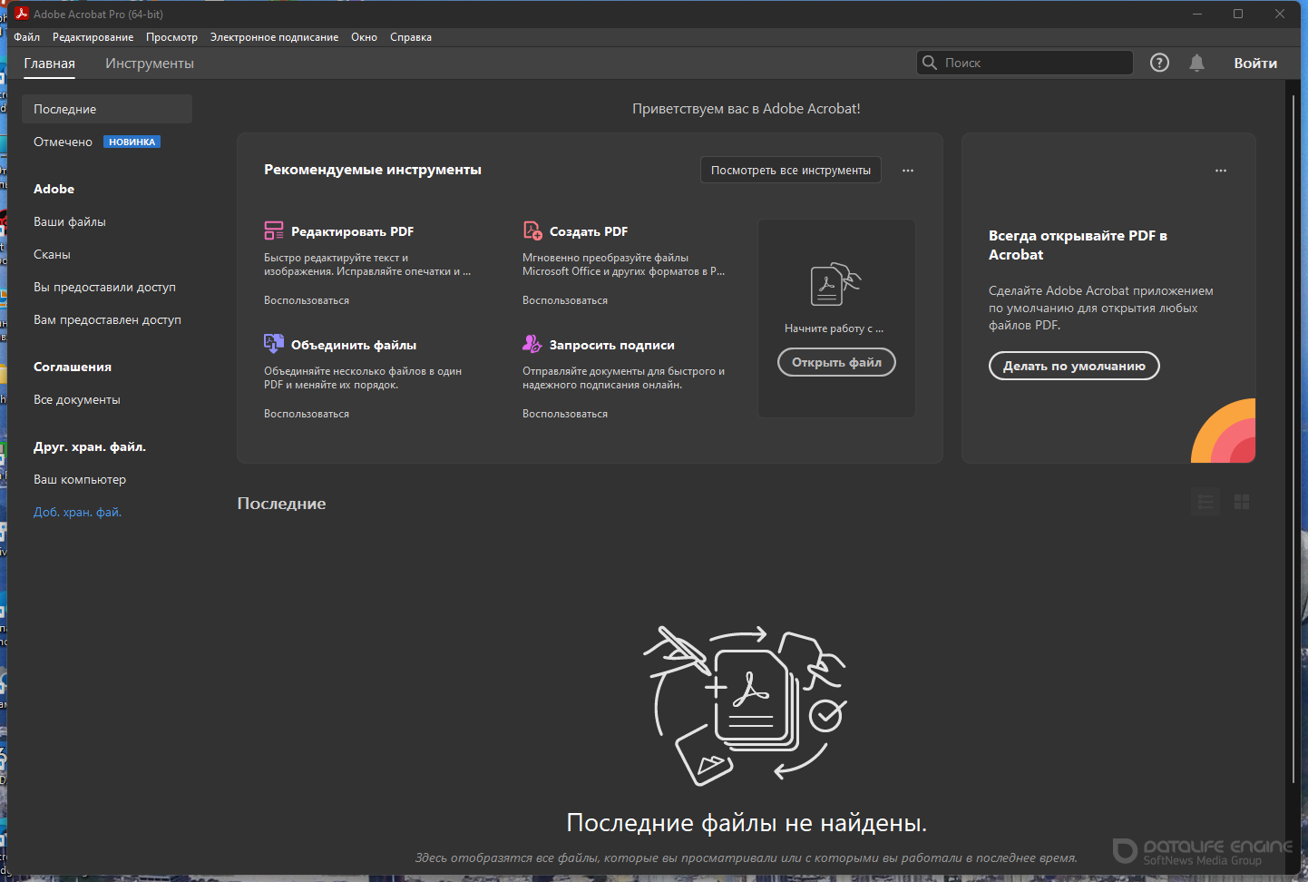 Получайте доступ к инструментам PDF и недавно открытым файлам из офиса, с домашнего компьютера или с мобильного устройства.