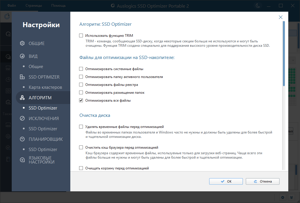 С помощью SSD Optimizer вы можете очистить диск от ненужных файлов перед запуском оптимизации, чтобы меньше данных перемещалось во время операции.