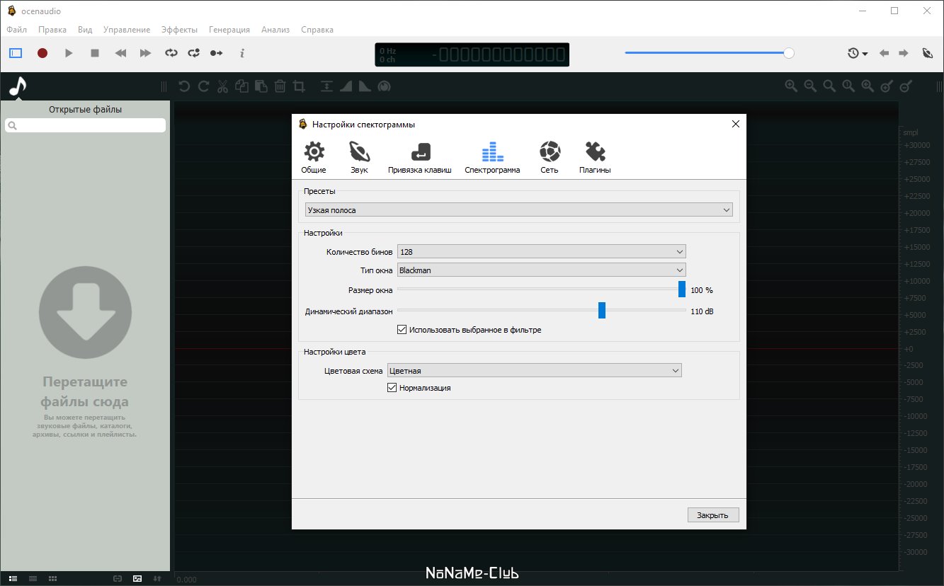 Продвинутые пользователи будут удивлены, обнаружив, что параметры спектрограммы применяются в режиме реального времени. Дисплей обновляется сразу после изменения функций, таких как количество частотных полос, window type and size и динамический диапазон отображения.