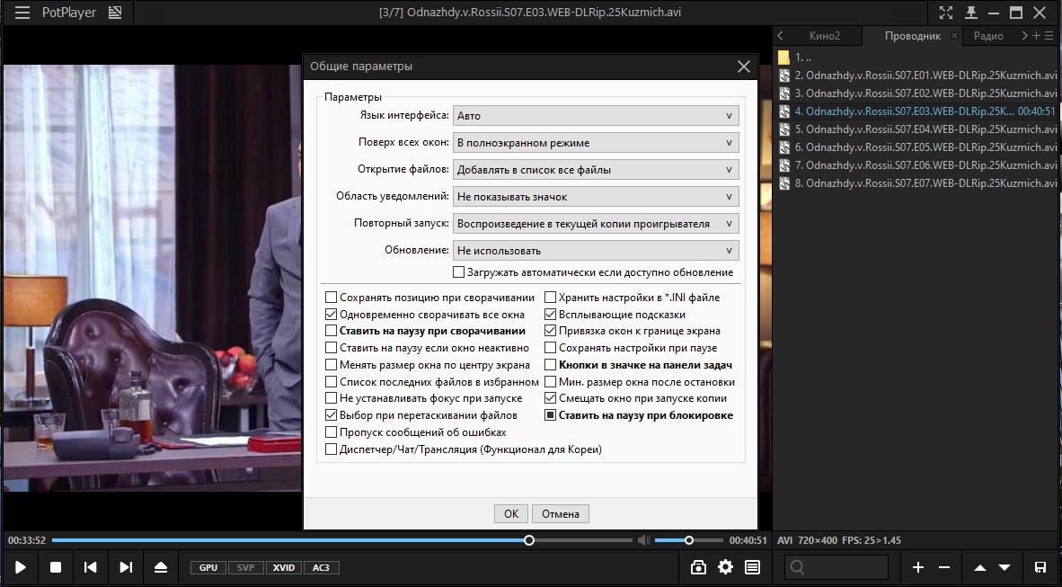 6. Возможность ассоциации плеера только с основными типами видео-файлов или со всеми поддерживаемыми файлами (включая аудио и плейлисты)