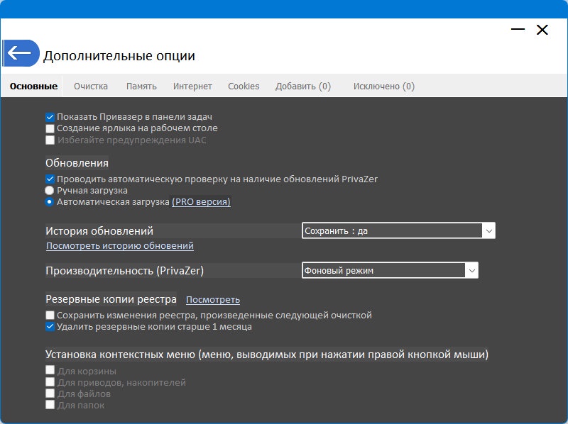 В настройках программы PrivaZer можно найти ряд интересных вещей. Например, тут можно удалить файл подкачки (pagefile.sys), режим гибернации и резервное копирование для реестра Windows. В зависимости от потребностей пользователя можно установить "фоновый" или "ускоренный" режим работы. Благодаря такому обилию настроек и возможностей программа PrivaZer должна найти свое место на рынке в данном классе. К тому в состав утилиты включены даже функции, которые присутствуют только в дорогих коммерческих продуктах. Это относится к очистке низкоуровневых элементов файловой системы. Приложение PrivaZer предназначено для работы в среде операционных систем Windows XP, Vista, Seven, 8 (32 и 64 битные версии).