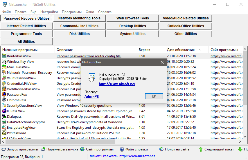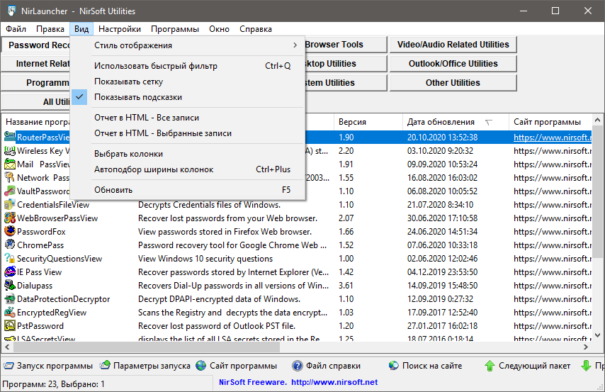 NirLauncher Package 1.23.35 Portable Версия программы: 1.23.35