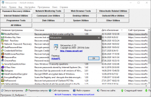 NirLauncher Package - универсальный пакет из более чем 200 портативных, небольших утилит, которые можно использовать ежедневно для различных целей на компьютере. Данное приложение предложит вам инструменты для редактирования контекстного меню проводника (к примеру удалять ненужные Вам пункты или добавлять какие-нибудь новые), инструменты для работы с сетью, поможет восстановить утерянные пароли почтовых клиентов и веб-браузеров, дисковые утилиты для работы с жесткими дисками, просмотра и извлечения cookies, кэша, и другой информации браузеров, инструменты для просмотра установленных шрифтов и управления ими. В пакет NirLauncher включены версии как для 32-х разрядной, так и для 64-х разрядной системы. В зависимости от разрядности системы, программа автоматически запускает нужную утилиту для x32 или x64 системы.