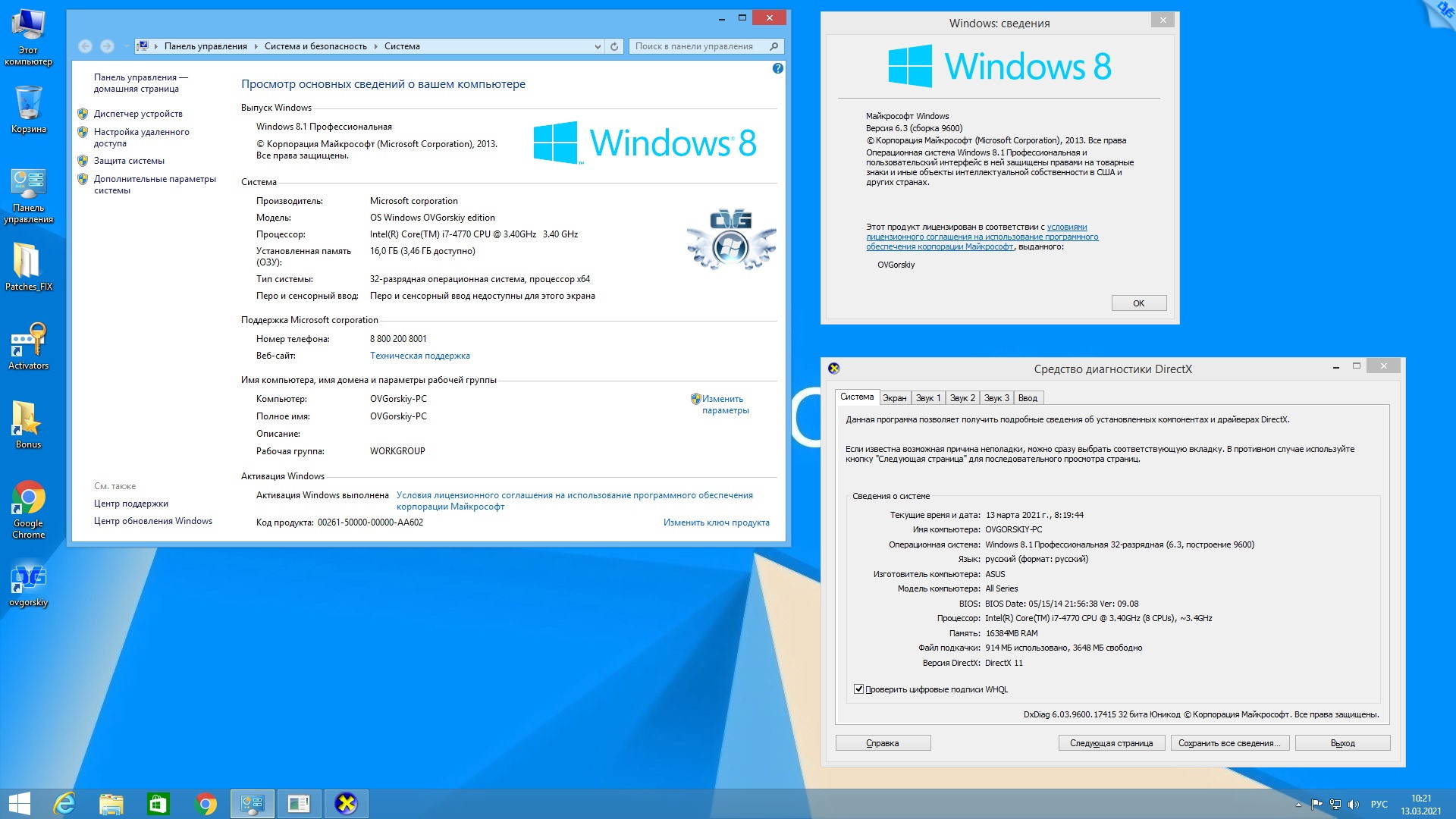 Microsoft® Windows® 8.1 Professional VL with Update 3 x86-x64 Ru by OVGorskiy 03.2021 2DVD Версия программы: 6.3.9600 сборка 9600 (6.3.9600.19968).