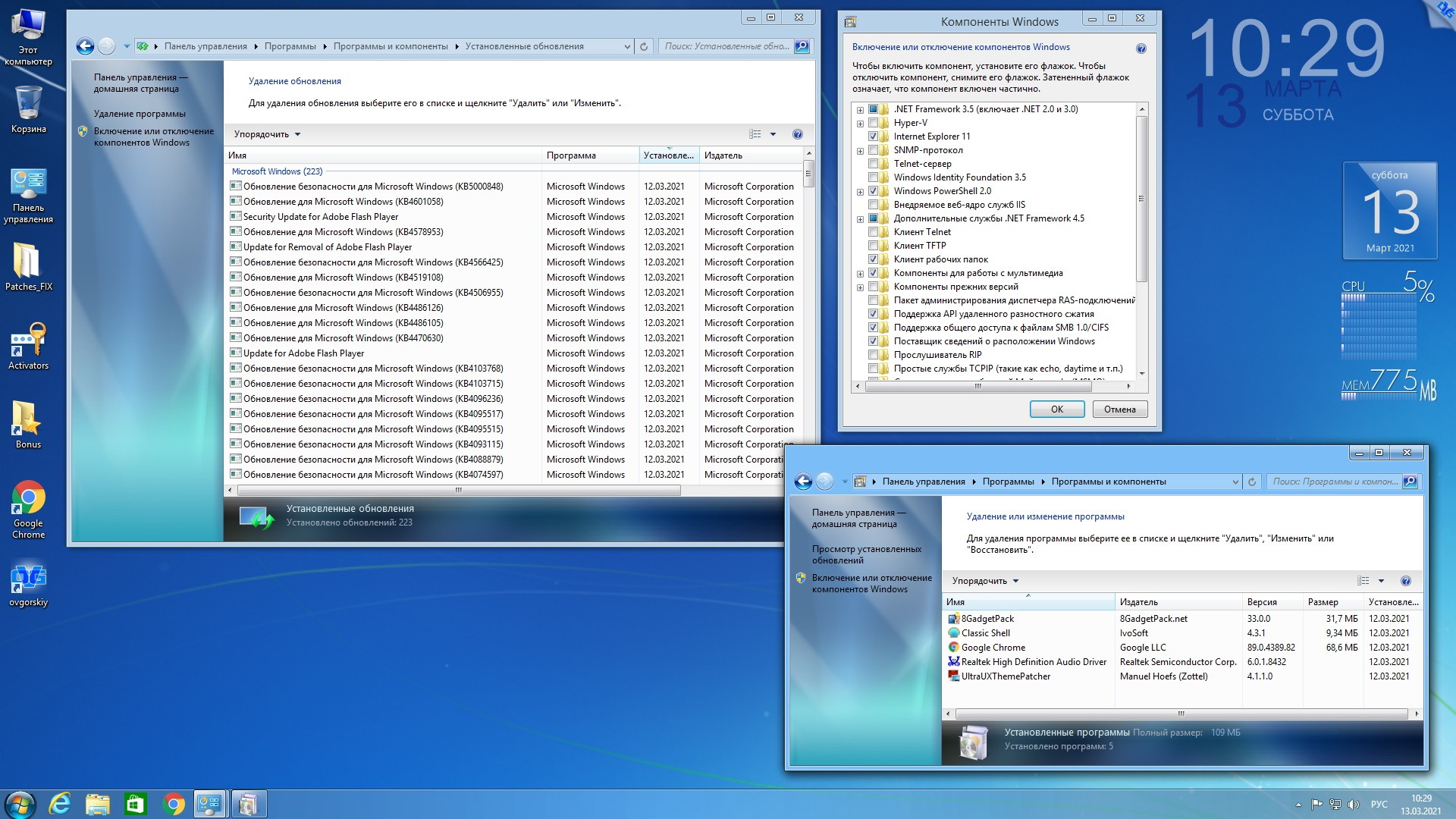 - Ultra UXTheme Patcher v4.1.1, программа-патчер для добавления возможности применения сторонних тем оформления;