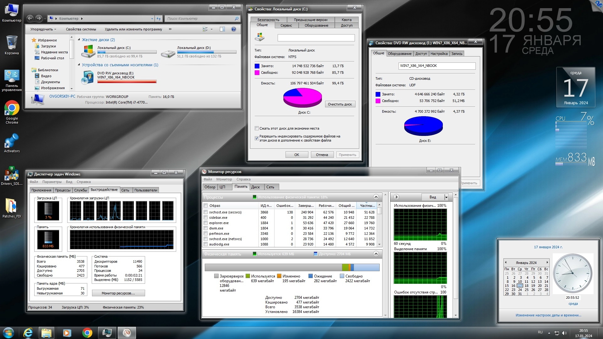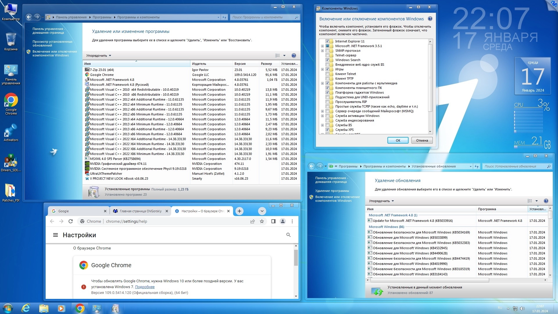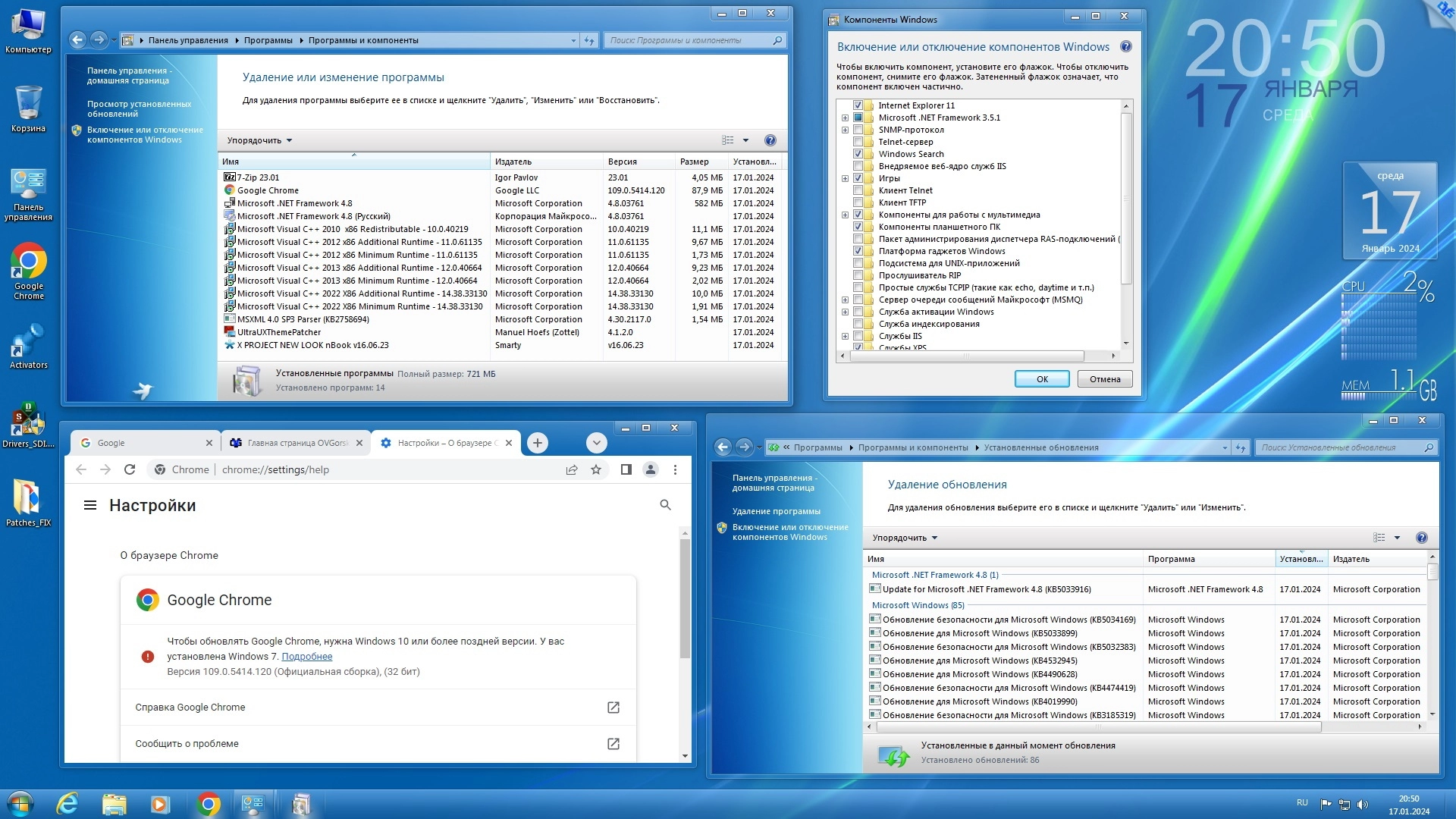 Работоспособность Windows 7 Ultimate Ru x86/x64 nBook IE11 by OVGorskiy 01.2024 1DVD торрент в скриншотах:
