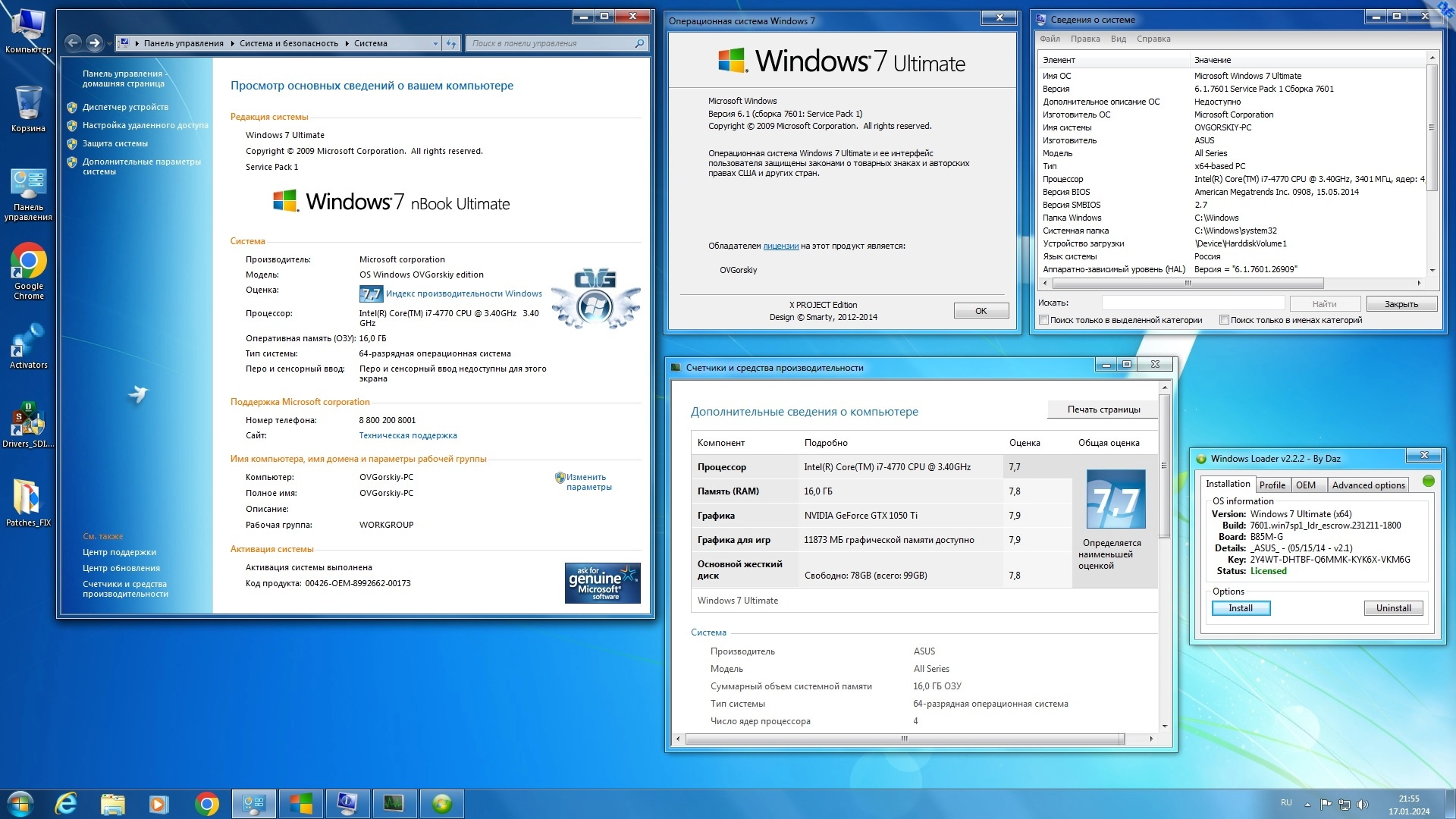 Технические данные Windows 7 Ultimate Ru x86/x64 nBook IE11 by OVGorskiy 01.2024 1DVD торрент: