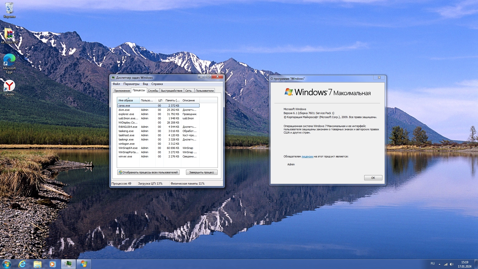 Работоспособность Windows 7 Ultimate x64 Update January 2024 торрент в скриншотах:
