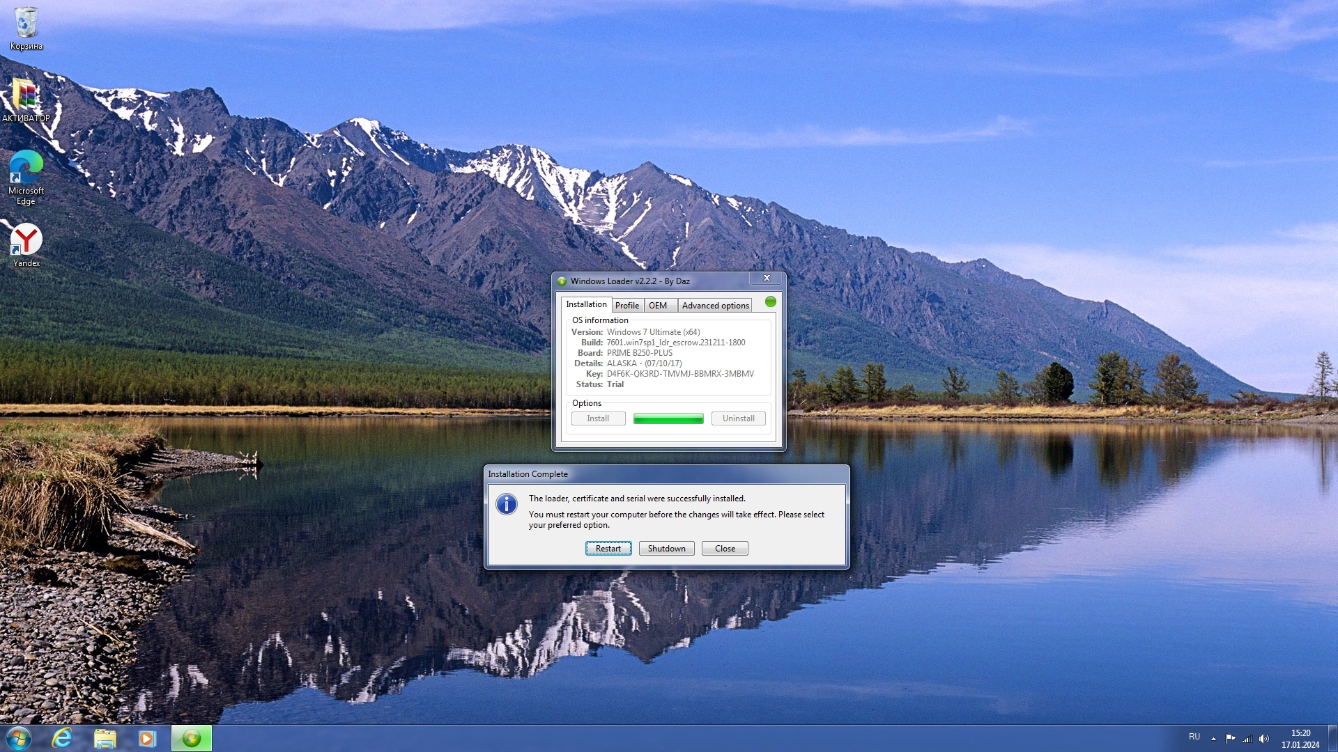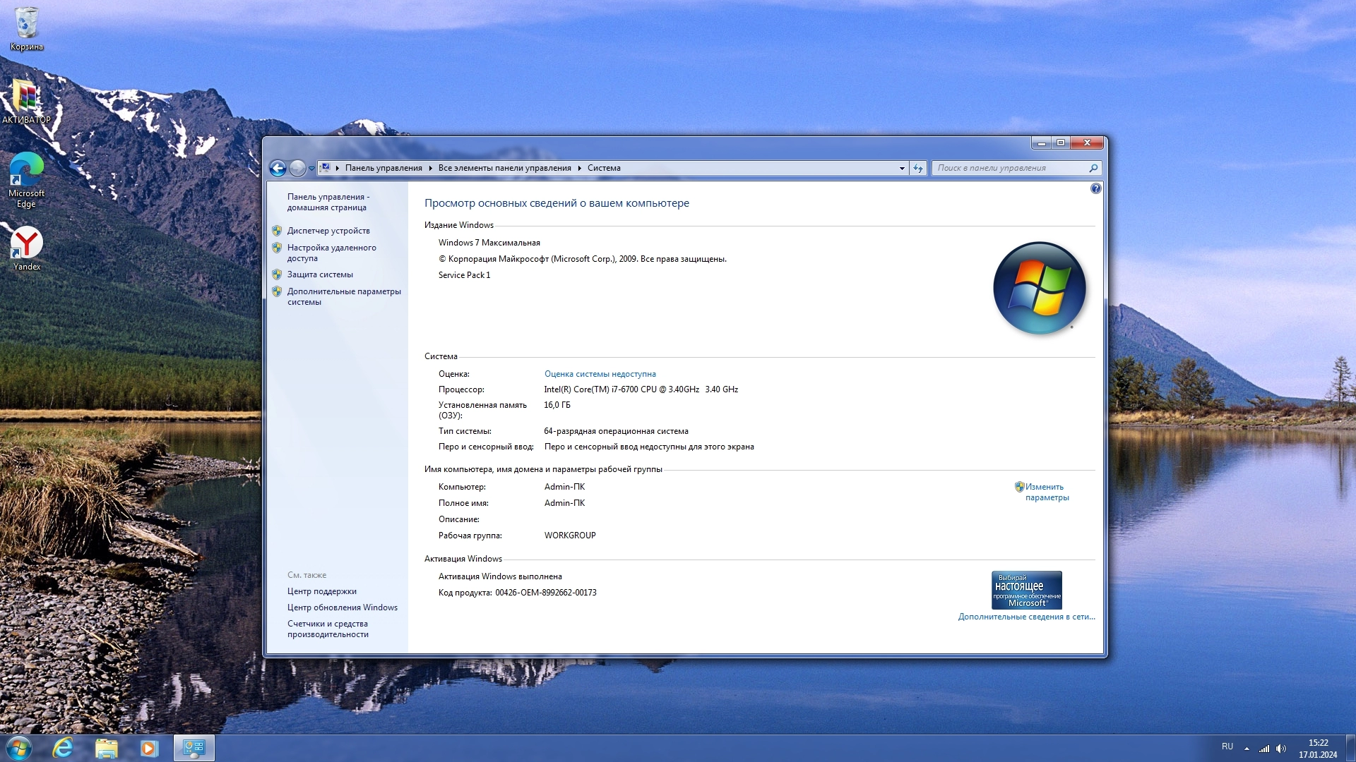 Технические данные Windows 7 Ultimate x64 Update January 2024 торрент: