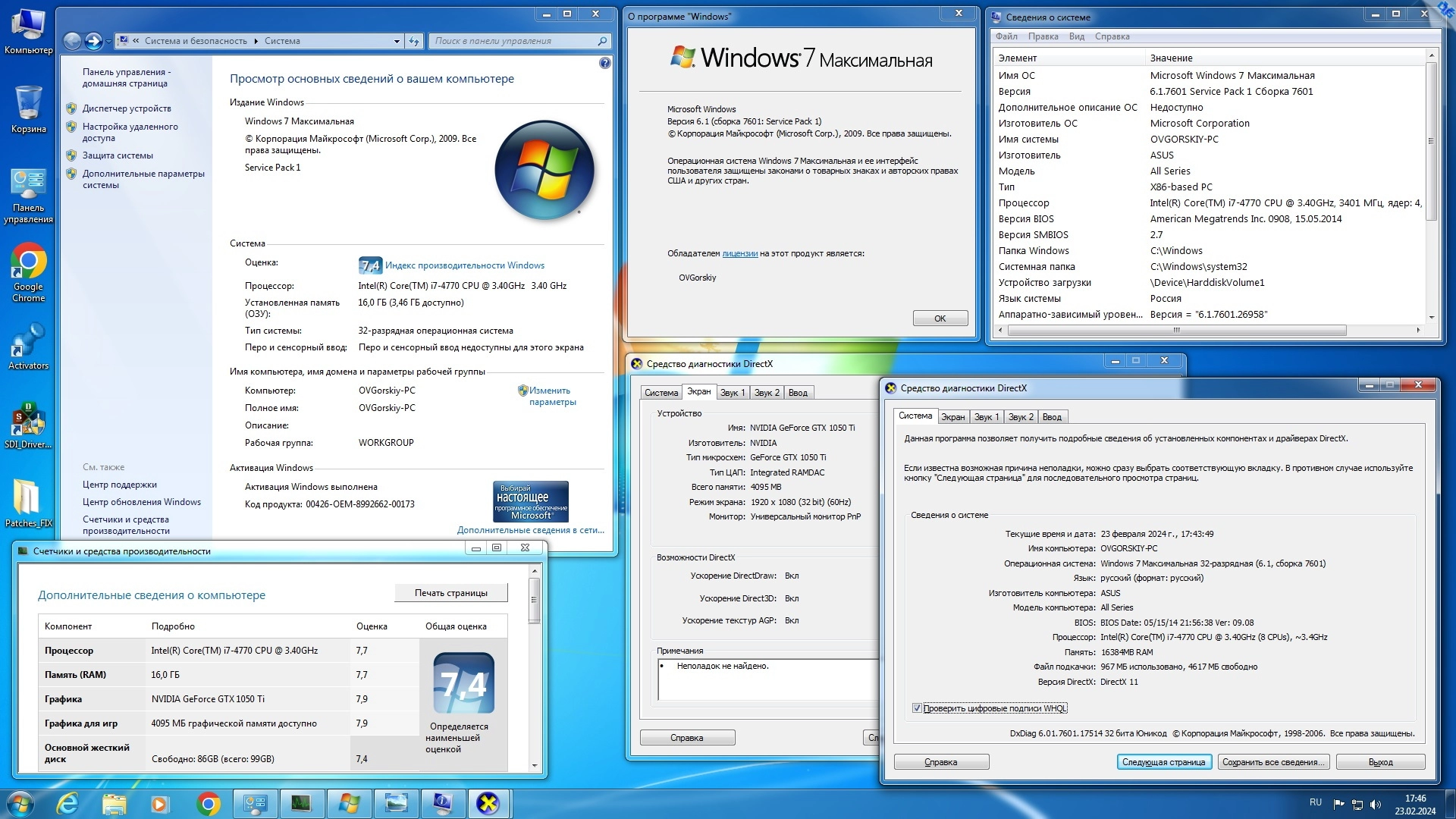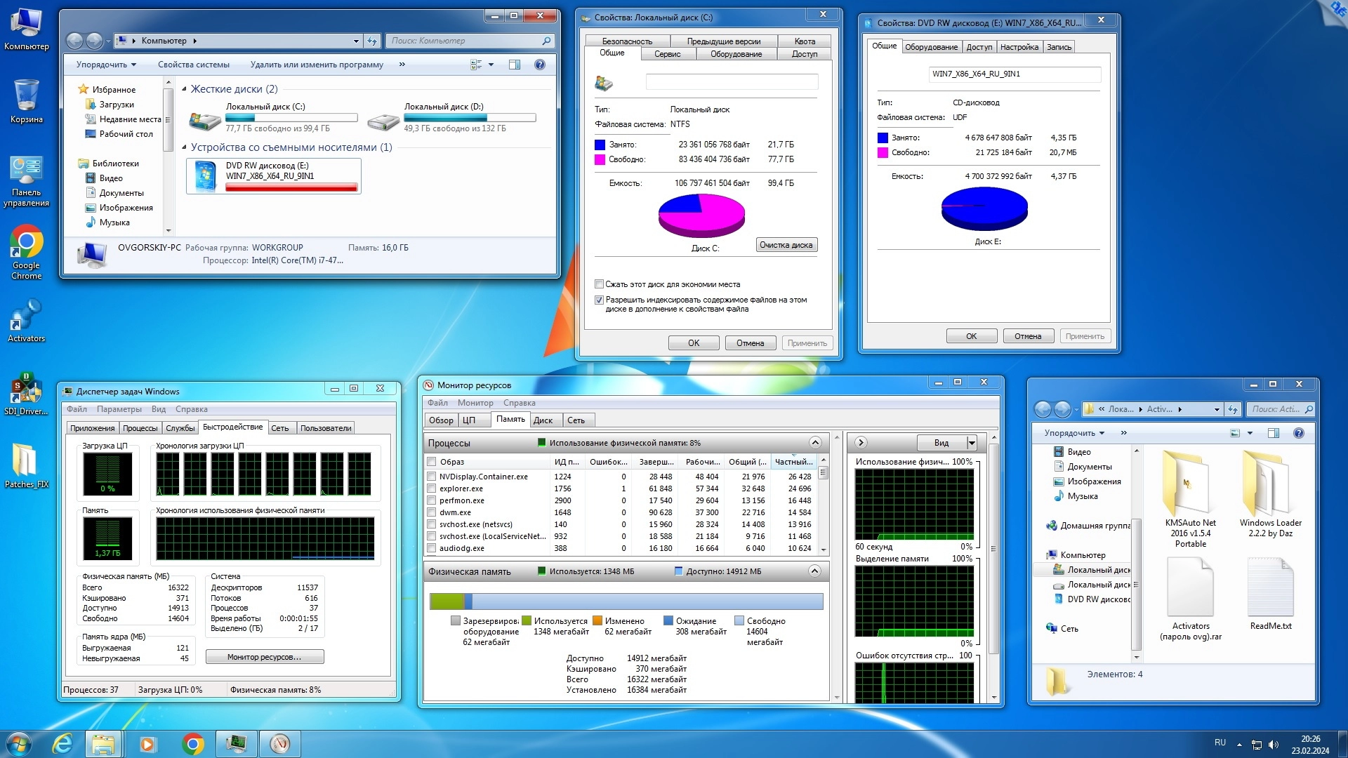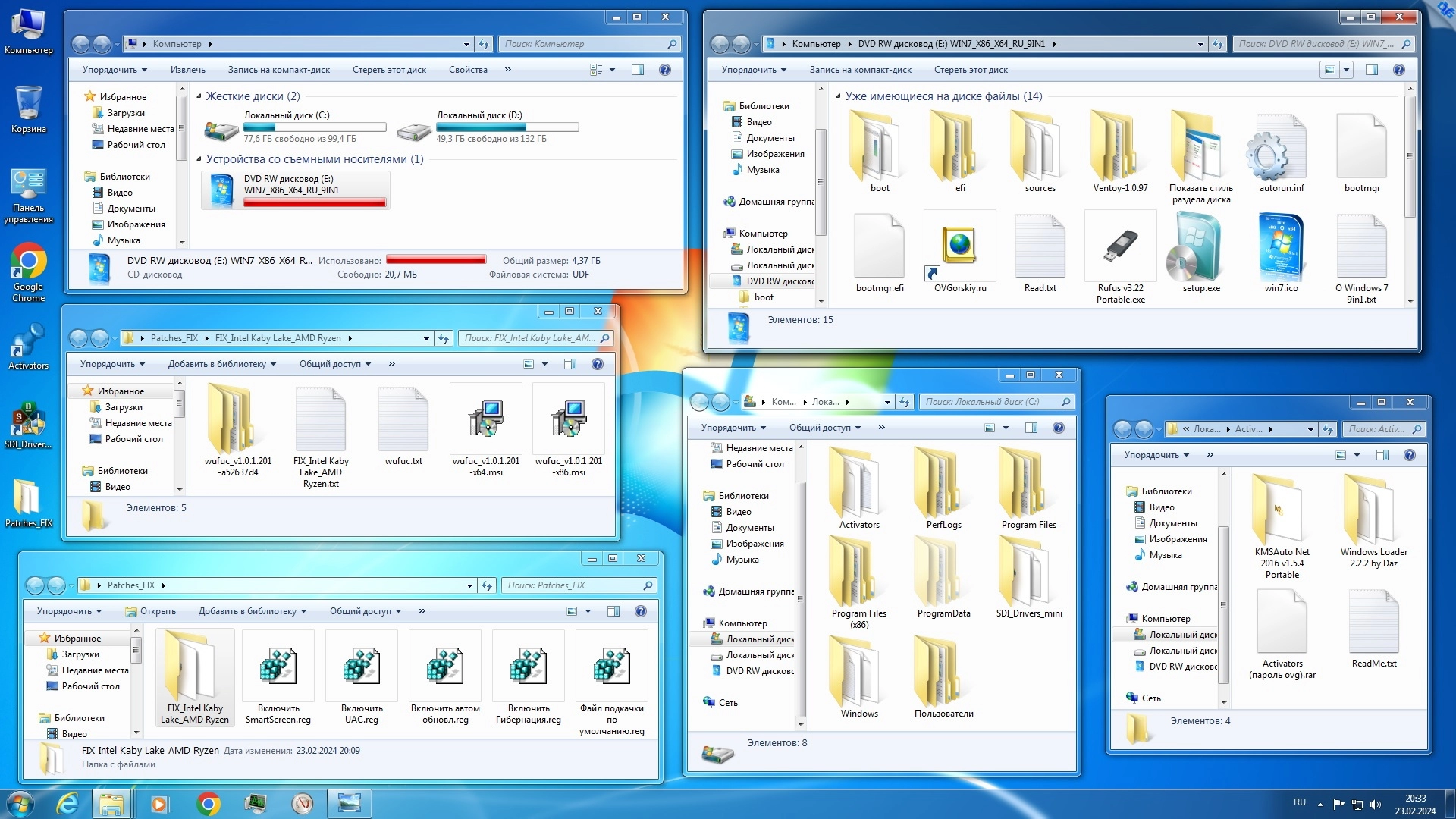 Работоспособность Windows 7 SP1 x86/x64 Ru 9 in 1 Update 02.2024 by OVGorskiy торрент в скриншотах: