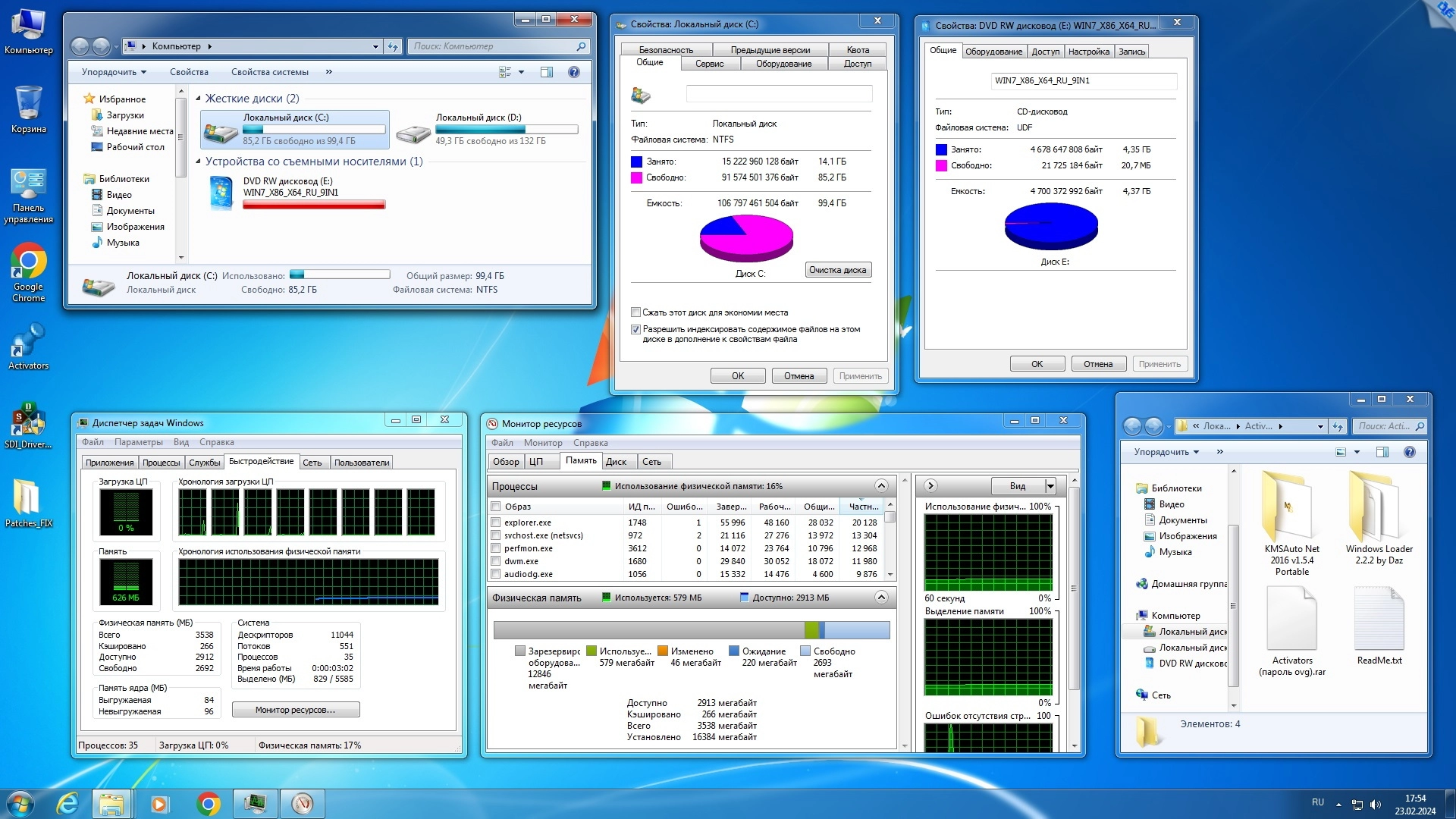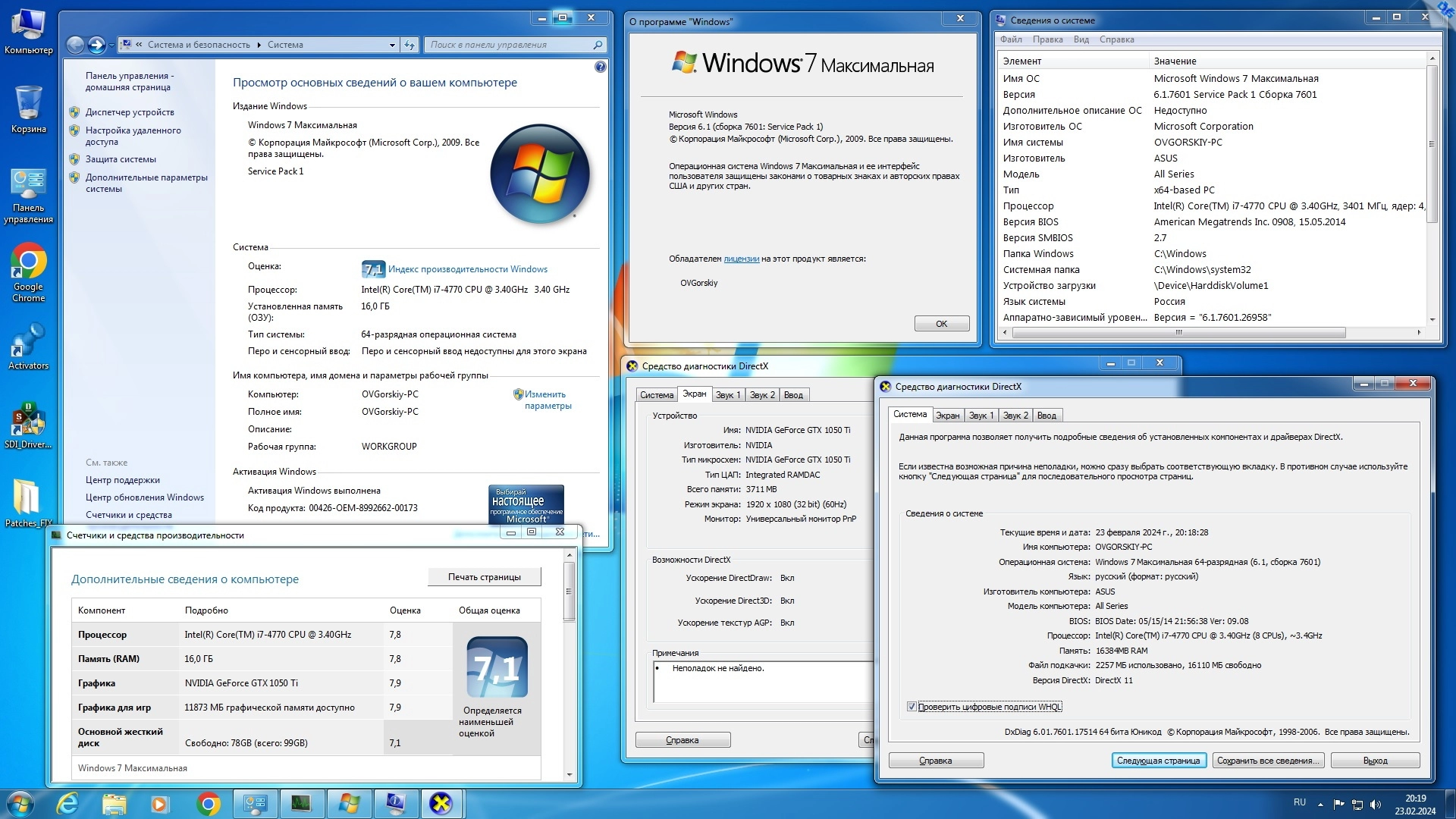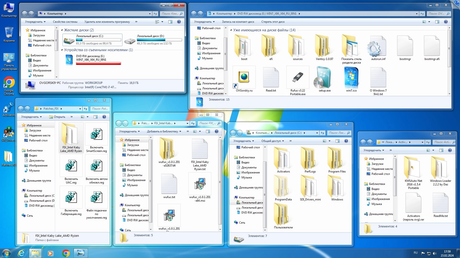 Работоспособность Windows 7 SP1 x86/x64 Ru 9 in 1 Update 02.2024 by OVGorskiy торрент в скриншотах: