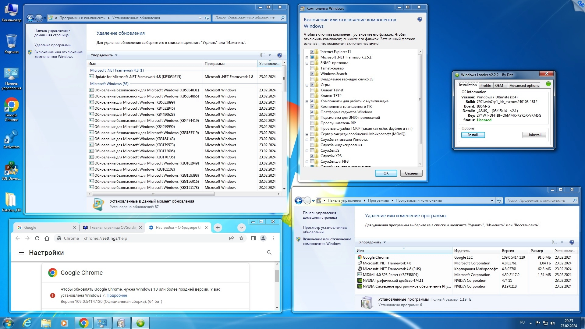 Торрент Windows 7 SP1 x86/x64 Ru 9 in 1 Update 02.2024 by OVGorskiy, возможности и способности: