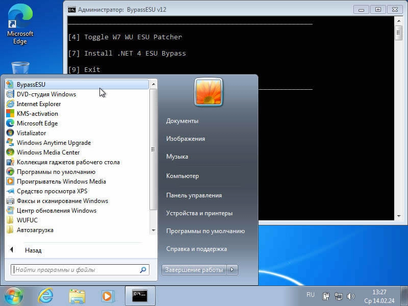 - В сборку интегрирована утилита BypassESU версии 12, снимающая блокировку с установки ESU-обновлений. Ярлык управления этой утилитой доступен в меню "Пуск".