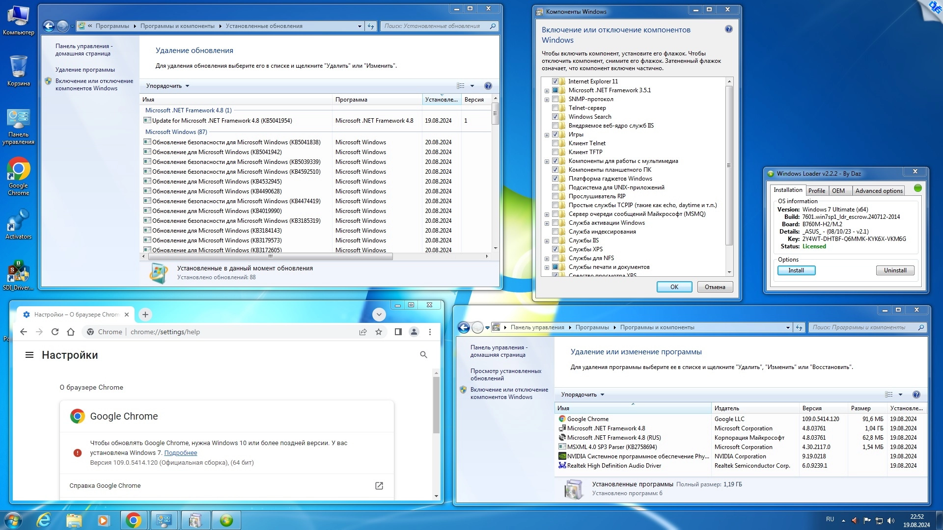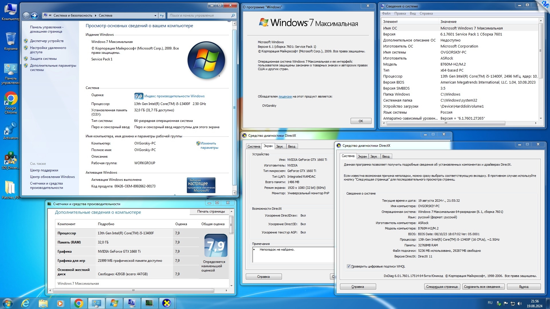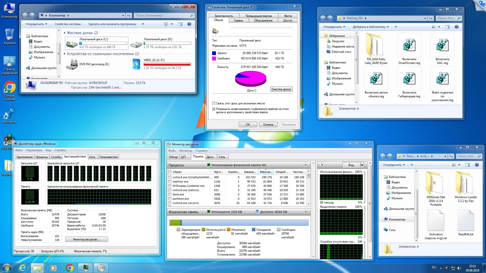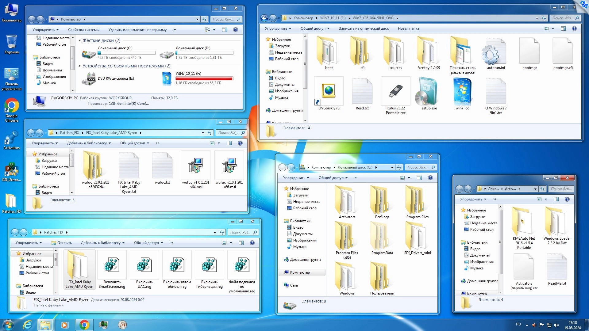 Работоспособность Windows 7 SP1 x86/x64 Ru 9 in 1 Update 08.2024 by OVGorskiy 1DVD торрент в скриншотах: