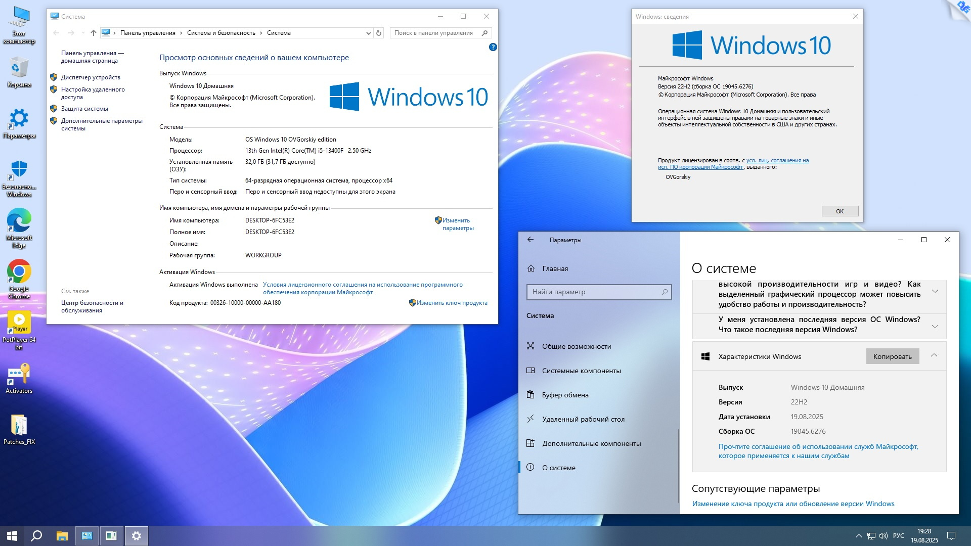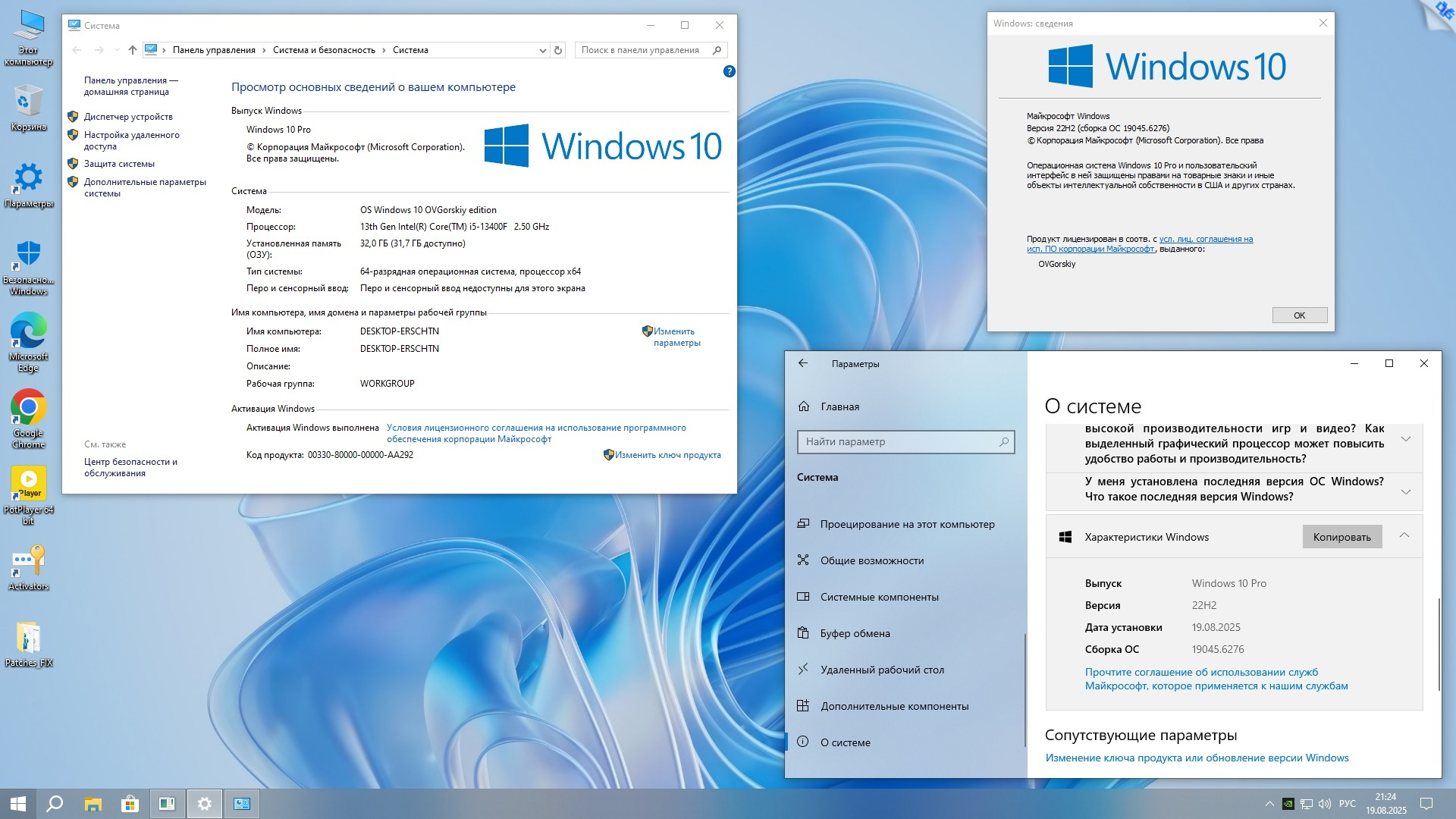 Работоспособность Windows 10 x64 Pro-Home Optim Plus 22H2 by OVGorskiy 08.2025 торрент в скриншотах: