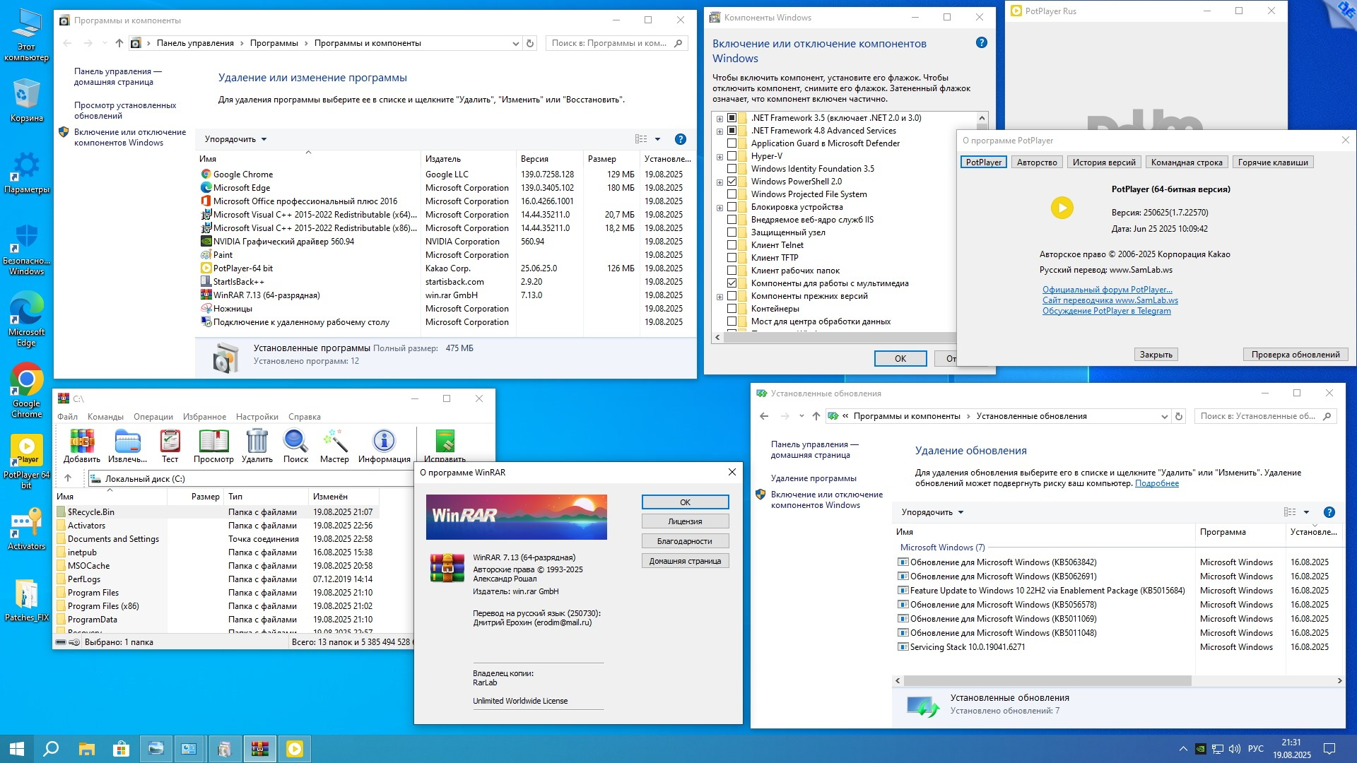 Добавлено: запущен компонент ОС .NetFramework 3.5 (2.0 и 3.0 включительно), требуется некоторым программам, запущен протокол SMB1 для старых сетей, отображать "Мой Компьютер" на рабочем столе, в меню рабочего стола добавлены дополнительное подменю "Персонализация+"