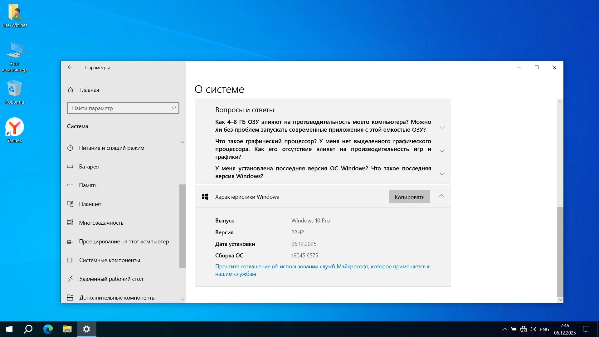 Работоспособность Windows 10 Pro 22H2 Build 19045.6575 Optima торрент в скриншотах: