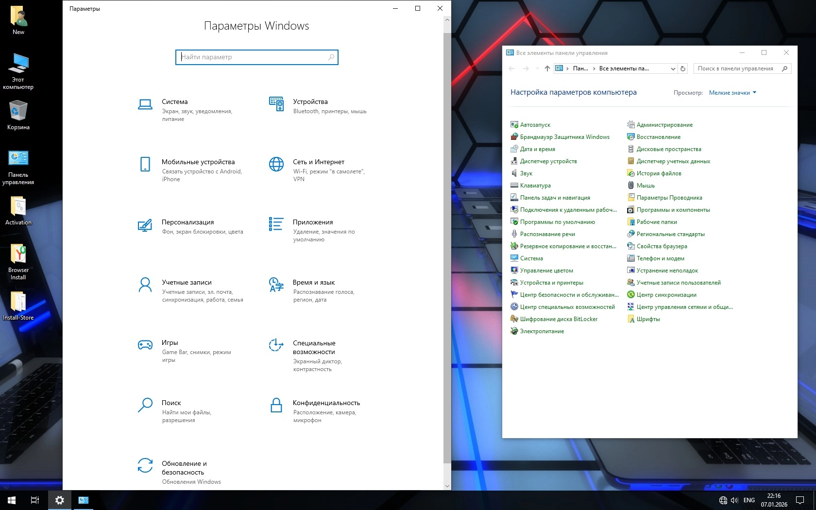 • Гибернация отключена, Просмотрщик фото разрешен, Калькулятор классический (новый можете скачать из Магазина). По умолчанию Store в системе, но добавлен очень надежный его установщик на рабочий стол.